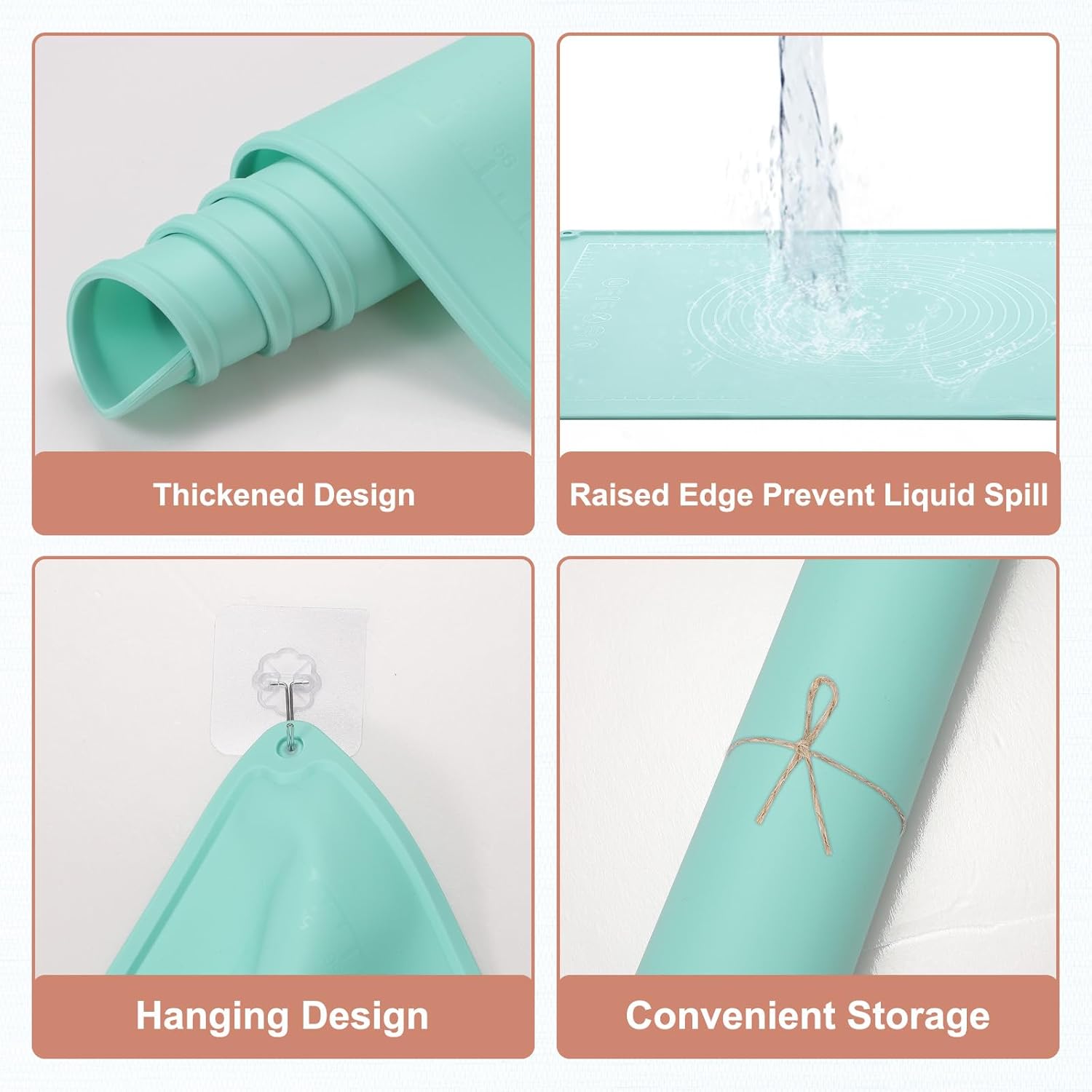 uxcell Silicone Pastry Mat, 19.7" x 15.8" Silicone Baking Mat with Measurements, Non-Stick Dough Rolling Mat for Making Pastry Cookies Bread Pizza Green