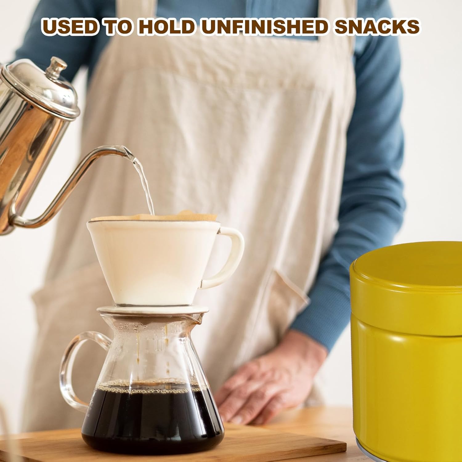 uxcell 2Pcs Round Tea Canisters, 4" x 4" Airtight Metal Tea Containers for Loose Tea, Coffee Beans, Spices - Durable, Compact, and Stylish Storage Tea Tin (Yellow)