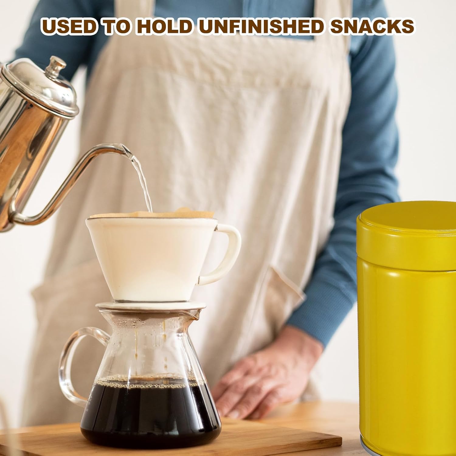 uxcell 2Pcs Round Tea Canisters, 5" x 3" Airtight Metal Tea Containers for Loose Tea, Coffee Beans, Spices - Durable, Compact, and Stylish Storage Tea Tin (Yellow)