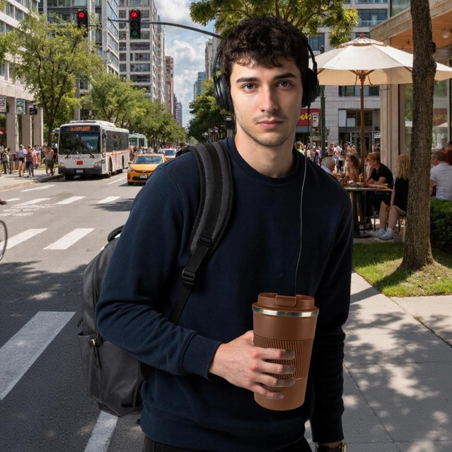 YINBAOGE Insulated Travel Coffee Mug Spill Proof Leak Proof Pobtable To Go Camping Stainless Steel Coffee Tumbler Reusable Coffee Cups with Lids Thermos for Hot and Cold Drink (Brown, 17 OZ)