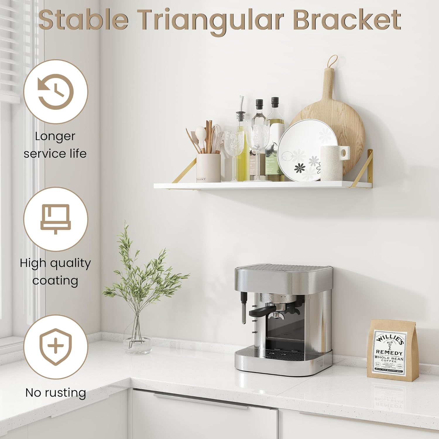 Floating Shelves for Wall, 12 Inch Deep Floating Shelves Set of 2, 30W x 12D Large Wall Shelf with Sturdy Metal Brackets for Living Room, Bathroom, Bedroom and Kitchen, White with Gold Bracket