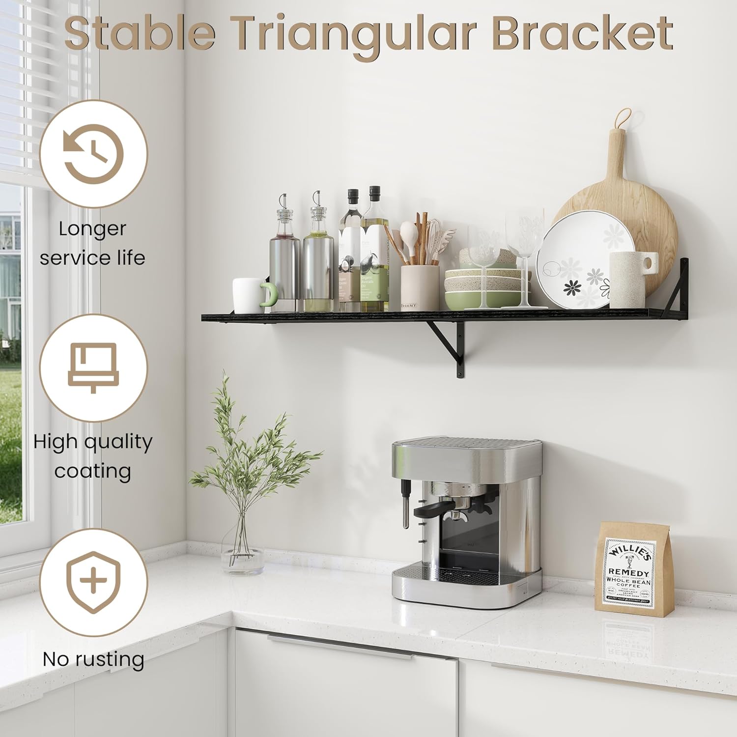 - Large Floating Shelves: Our versatile rustic wall shelves measure 48&12 inch floating shelves, offering generous storage or display space for any room in your home—be it the kitchen, living room, bedroom, bathroom, laundry room, and so on. With ample surface area, you can easily store or display items like books, collectibles, plants, crafts, photos, laundry supplies, and more.