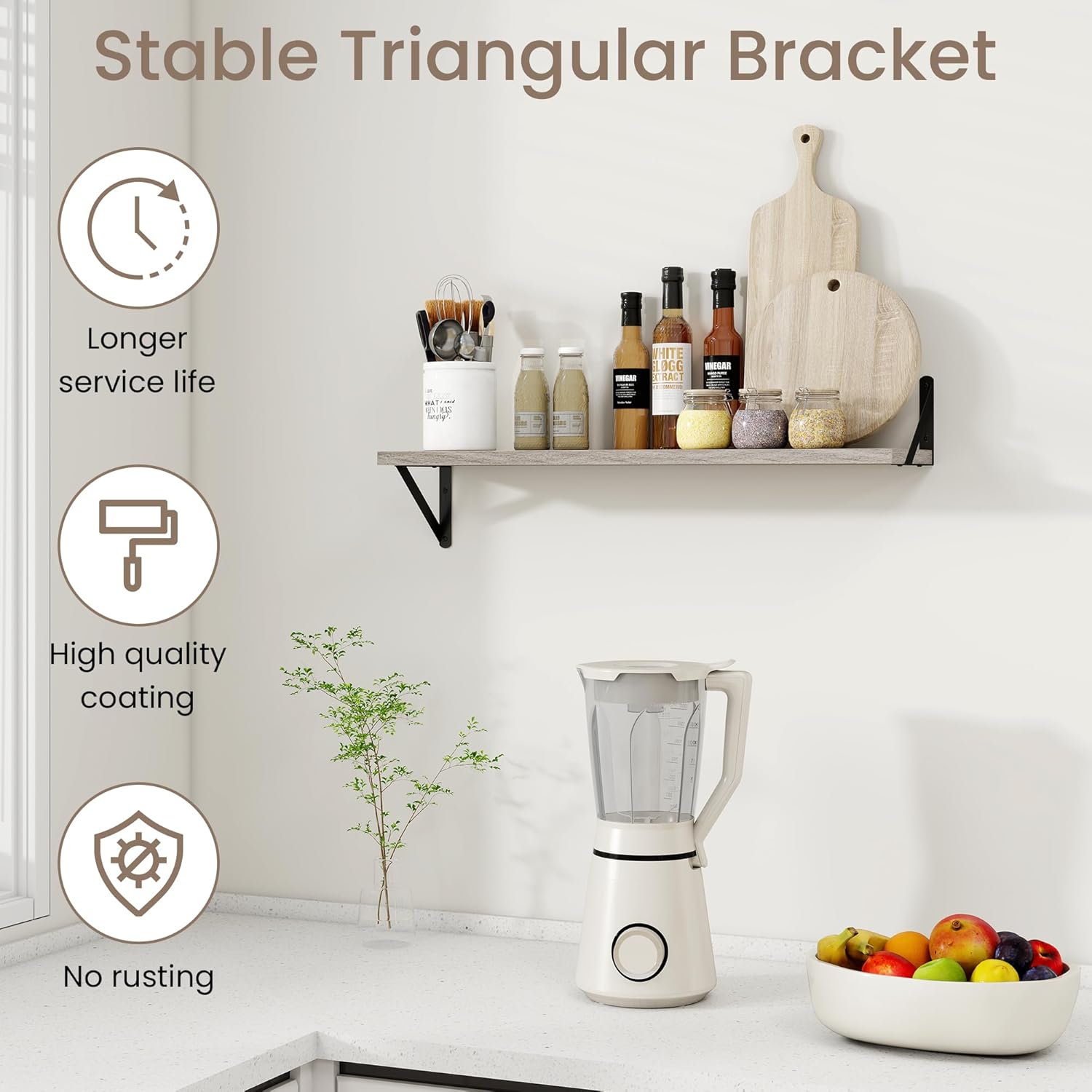 - Wide Application: These floating shelves are perfect for any room in your home. Use them in the living room to display artwork, in the kitchen for spices and utensils, in the bathroom for toiletries, or in the bedroom for books and accessories. Their versatility ensures they meet your storage and decor needs wherever you place them.