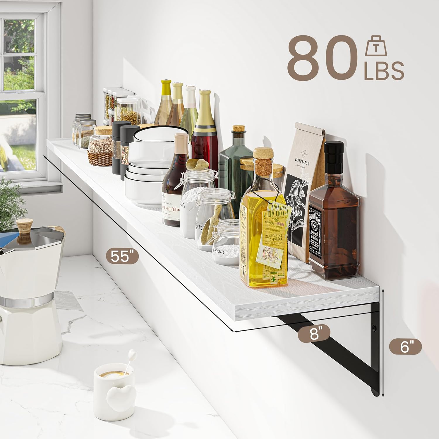 - Large with more Storage: With dimensions of 55 W x 8 D inches, these wall shelves offer ample space for storage and display. Whether you're showcasing your favorite books, photos, or decorative items, you'll find plenty of room to keep your essentials organized and within reach.