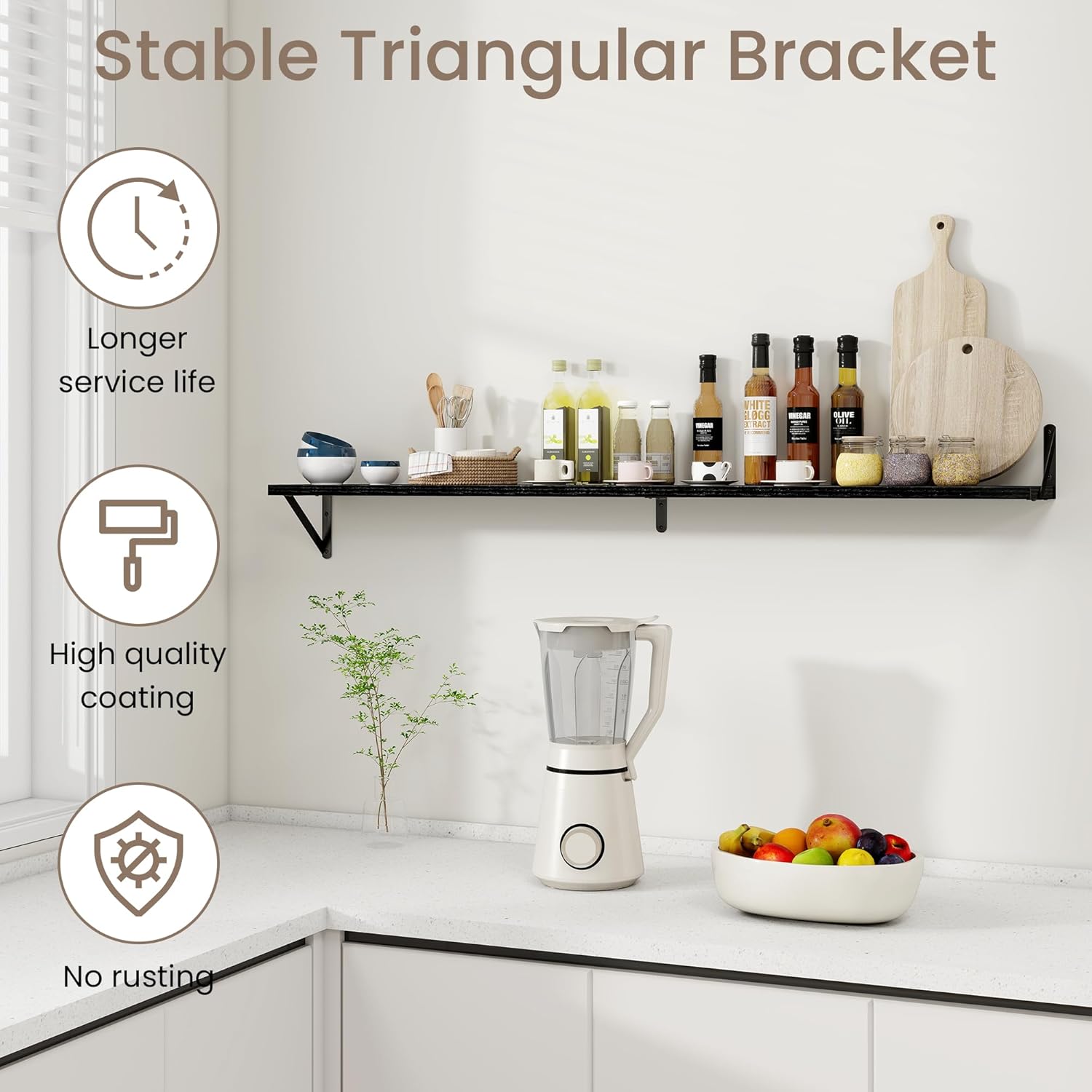 - Wide Application: These floating shelves are perfect for any room in your home. Use them in the living room to display artwork, in the kitchen for spices and utensils, in the bathroom for toiletries, or in the bedroom for books and accessories. Their versatility ensures they meet your storage and decor needs wherever you place them.