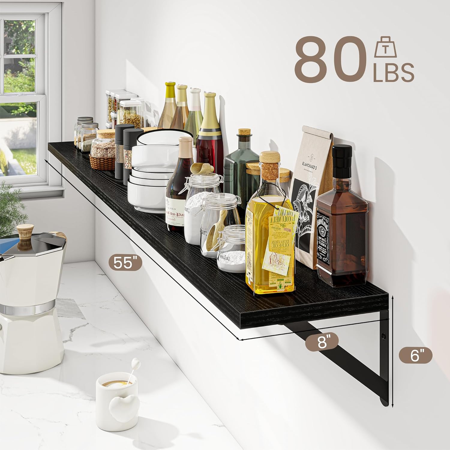 - Large with more Storage: With dimensions of 55 W x 8 D inches, these wall shelves offer ample space for storage and display. Whether you're showcasing your favorite books, photos, or decorative items, you'll find plenty of room to keep your essentials organized and within reach.