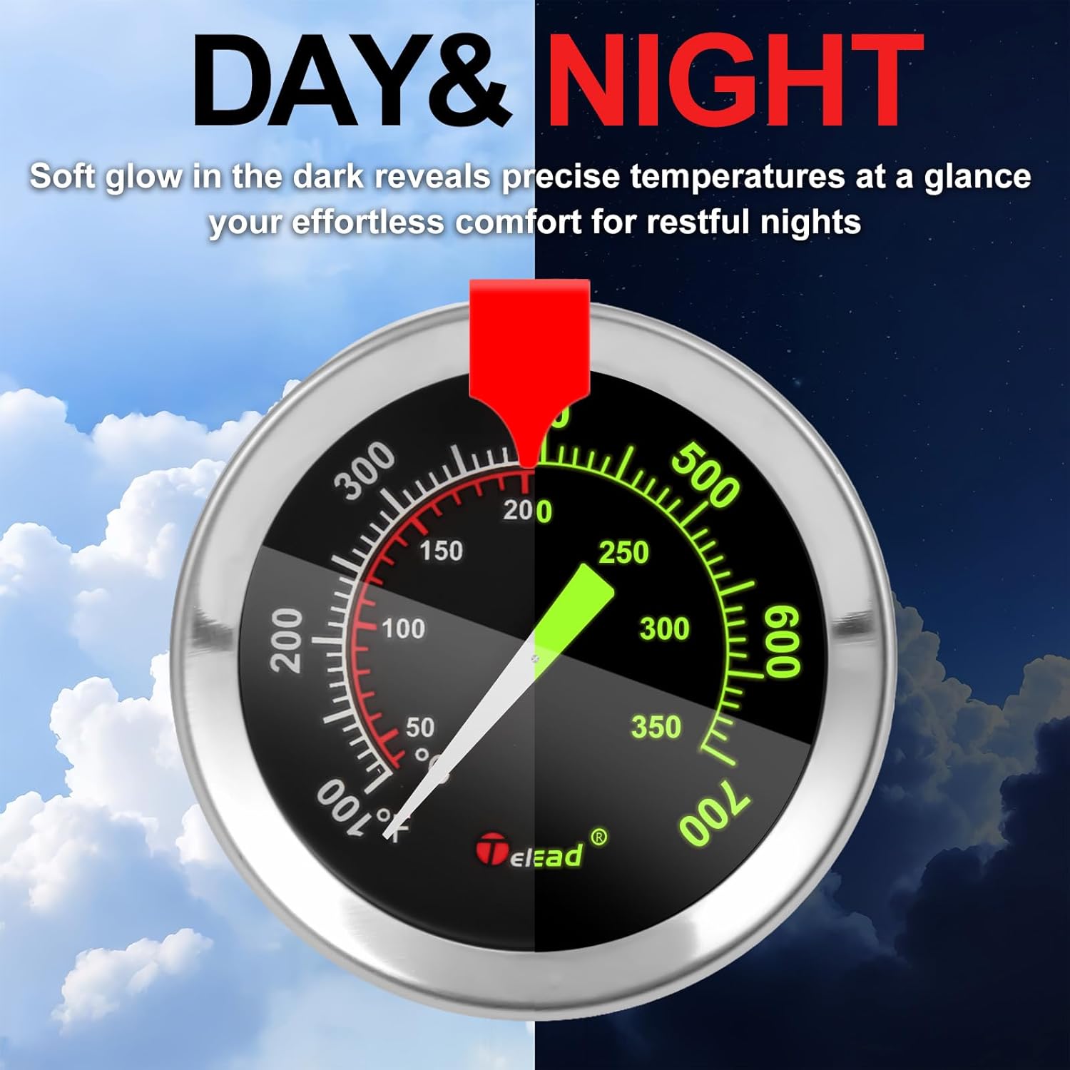 - 【GLOW-IN-THE-DARK DIAL】 Easy-to-read black face with luminous markings for low-light conditions (e.g., nighttime BBQ or dim kitchens)
