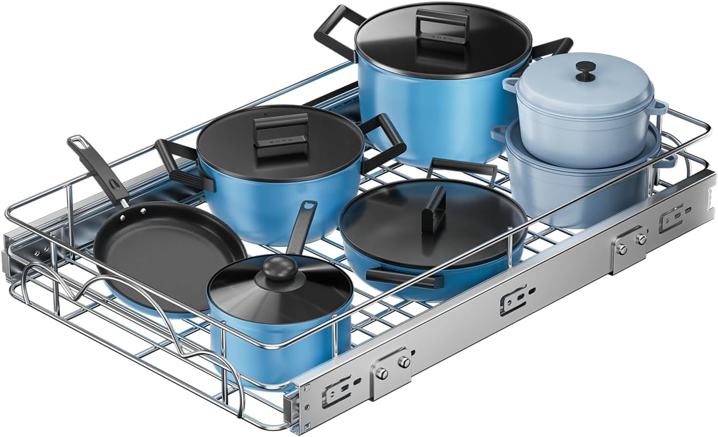 - 【Easy to Installation】Just Secure pull-out shelves for kitchen cabinets with four screws—no assembly required—eliminating the hassle of complicated installations. Note: Please make sure your cabinet's width is> 17 inches, depth is >21.2 inches, height is >3.6 inch