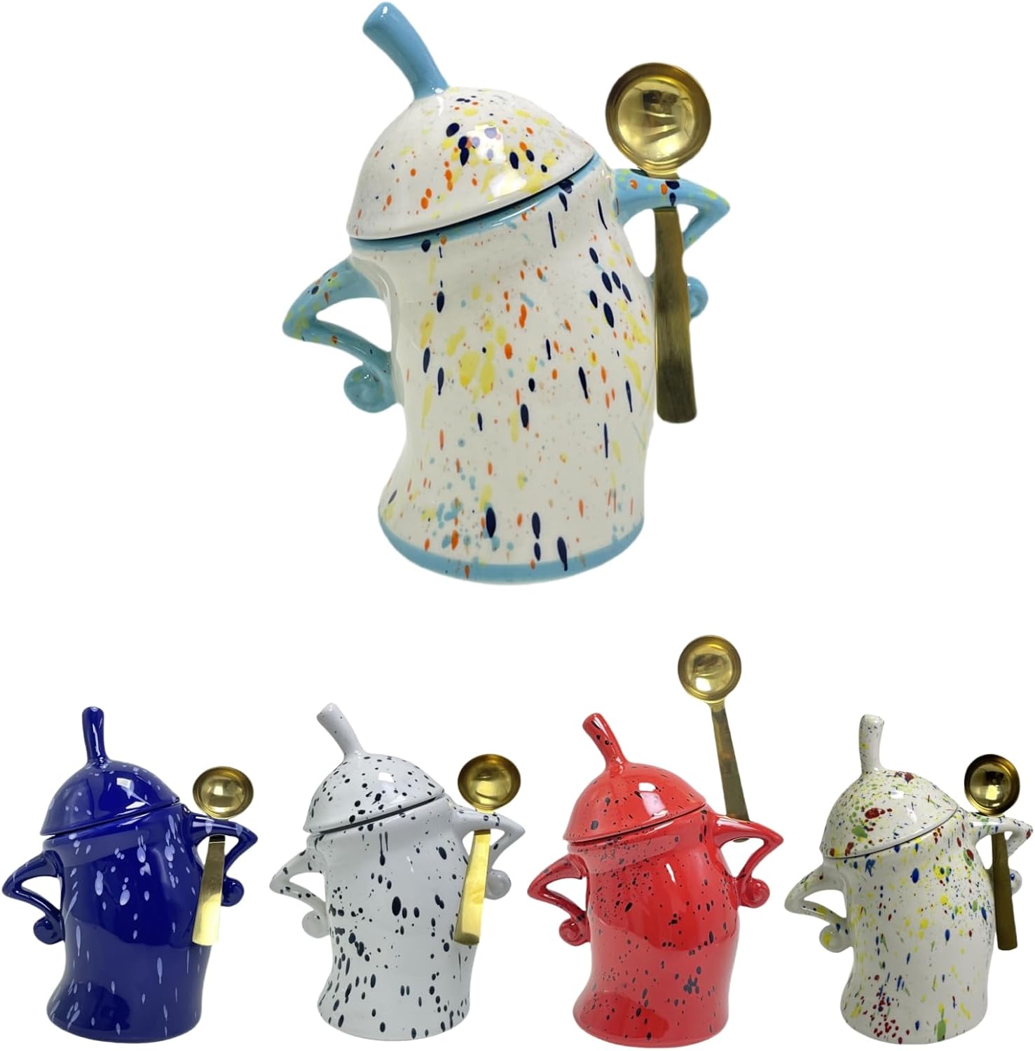 Canister With Attitude - 1.2L Ceramic Storage Jar with Lid, Airtight Kitchen Canisters Set for Coffee, Sugar & Tea | Farmhouse Flour Sugar Storage Container, Handmade with Spoon Rest (Gyan+White)