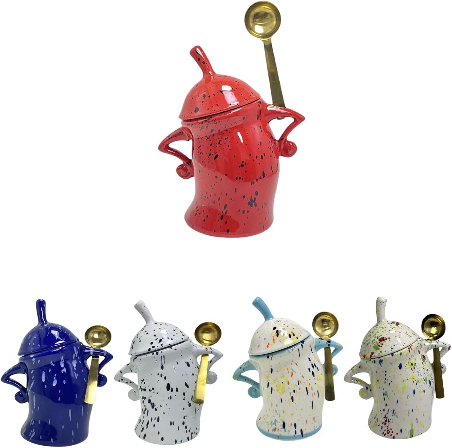 Canister With Attitude - 1.2L Ceramic Storage Jar with Lid, Airtight Kitchen Canisters Set for Coffee, Sugar & Tea | Farmhouse Flour Sugar Storage Container, Handmade with Spoon Rest (Red)