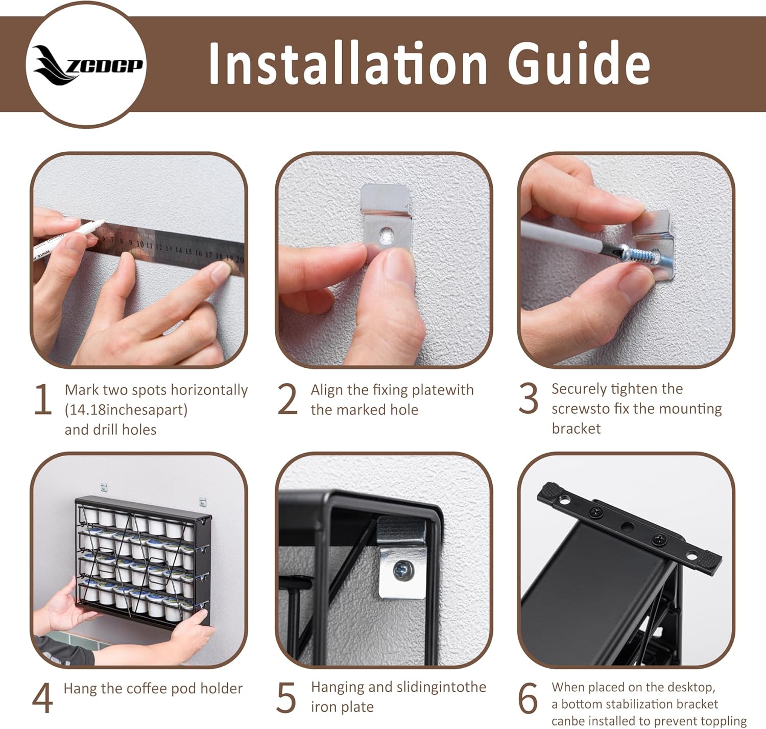 - 【Wall-Mount Pod Holder】Transform your coffee display into a masterpiece with our wall-mounted coffee bean holder. This organizer includes sturdy mounting fittings for effortless installation on drywall, as well as an adhesive pad for tile walls. Showcase your coffee collection with style!