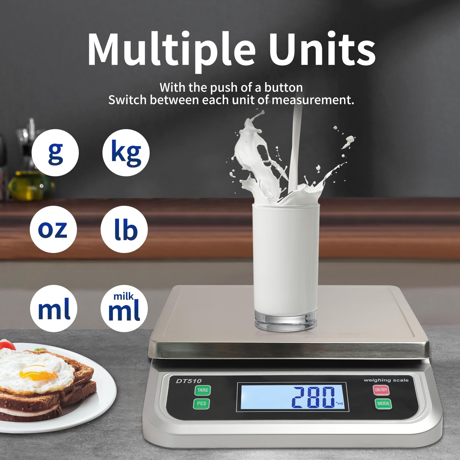 - MULTIFUNCTION COMMERCIAL KITCHEN SCALE: Easy Tare with a simple press of the tare button, you can subtract the weight of plates or containers, ensuring precise ingredient measurements. The PCS function enables small identical items counting such as pins, beads, screws.