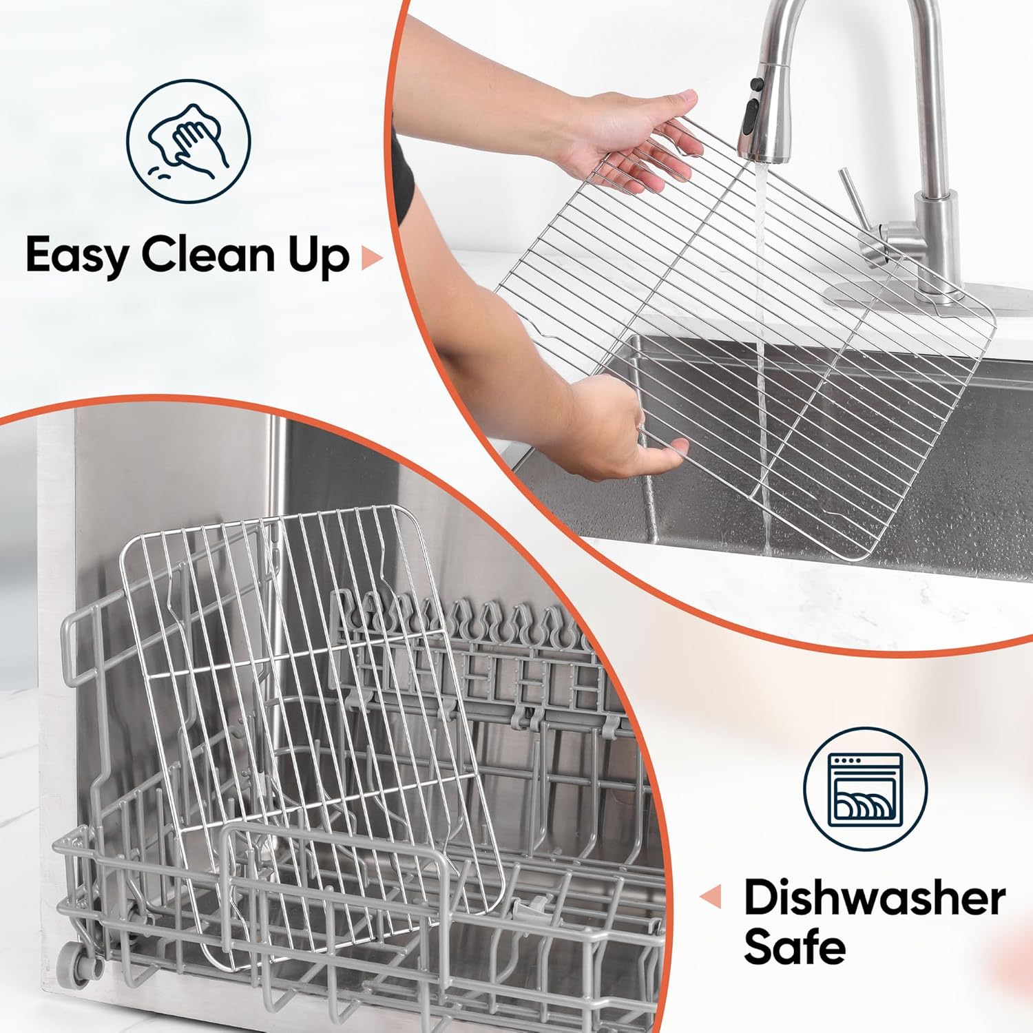 - Exquisite crafted, roasting rack designed with smooth edge without rough spots, provide a comfortable grip, dense wires prevent food from falling through, grid cooking racks are oven safe and heat-resistant up to 575℉