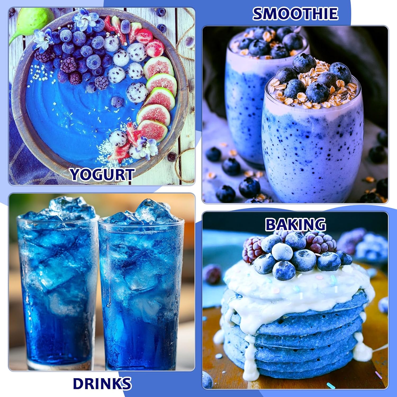 - SAFE & FAST - This blue spirulina dye free food coloring is no artificial colors, flavors, or preservatives are added. Gluten-free, non-GMO, and vegan ingredients make it a safe choice for more people. The powder form is easier for the body to absorb and is more convenient and quick to eat. The phycocyanin blue food coloring can be quickly prepared anytime, anywhere, providing a convenient nutritional supplement for natural life.