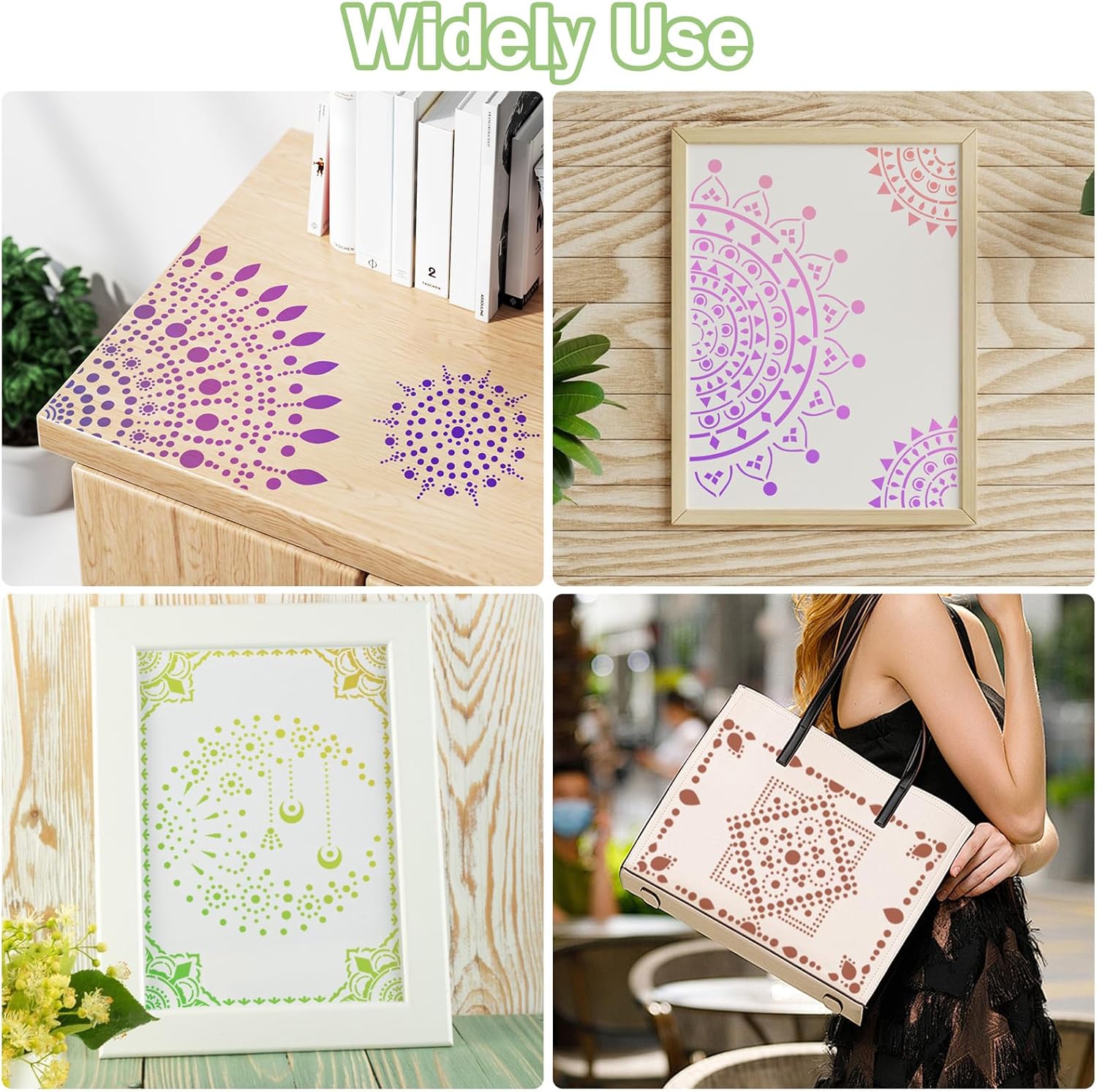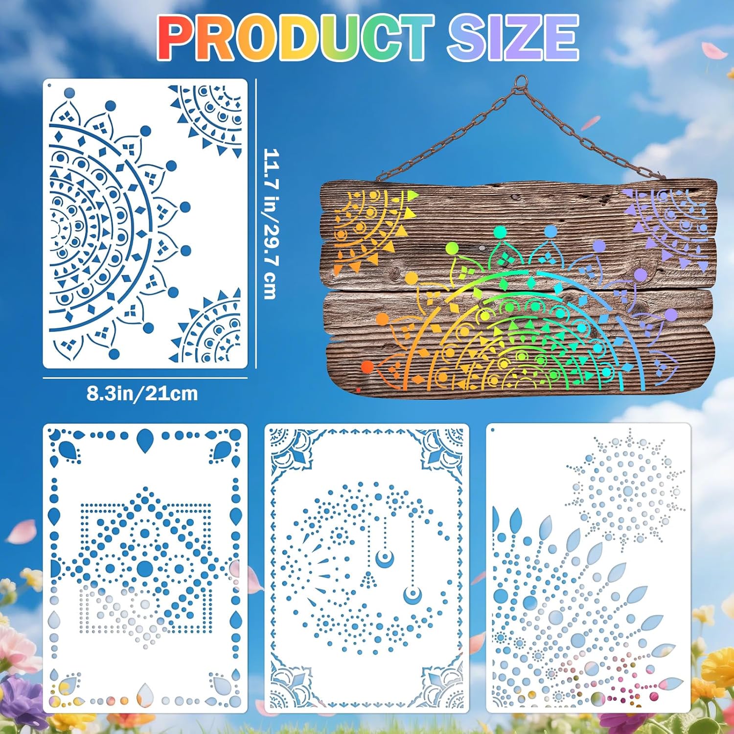 A4 Mandala 4 Pack 11x8'' Mandala Stencils for Painting on Wood, Floor, Wall, Tile Fabric, Reusable Furniture Stencils Painting Template