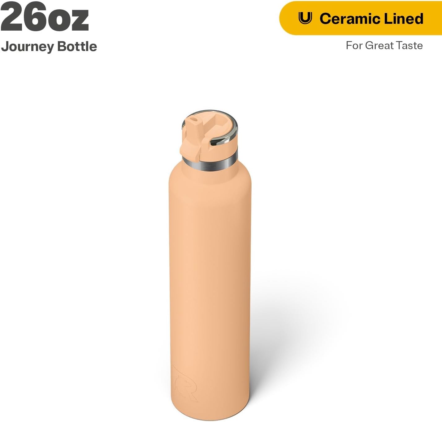 RTIC 26oz Journey Bottle Metal Stainless Steel Vacuum Insulated, BPA Free, Reusable, for Water, Hot and Cold Drinks, Travel, Sports, Camping, Peach Tea
