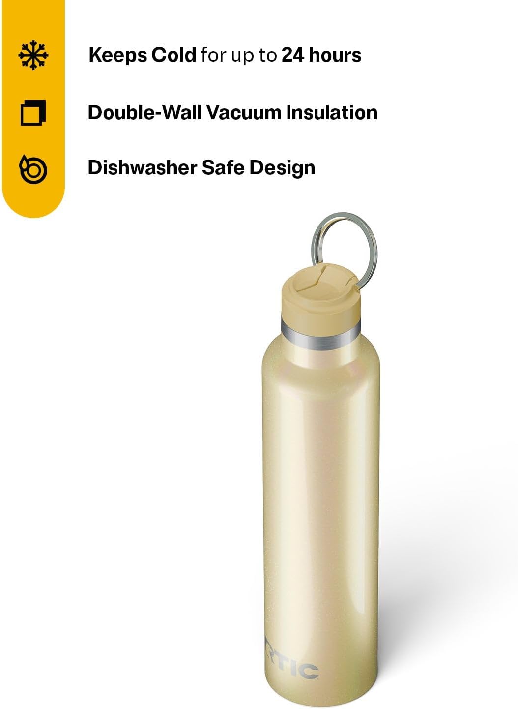RTIC 26oz Journey Bottle Metal Stainless Steel Vacuum Insulated, BPA Free, Reusable, for Water, Hot and Cold Drinks, Travel, Sports, Camping, Sunlight Glitter
