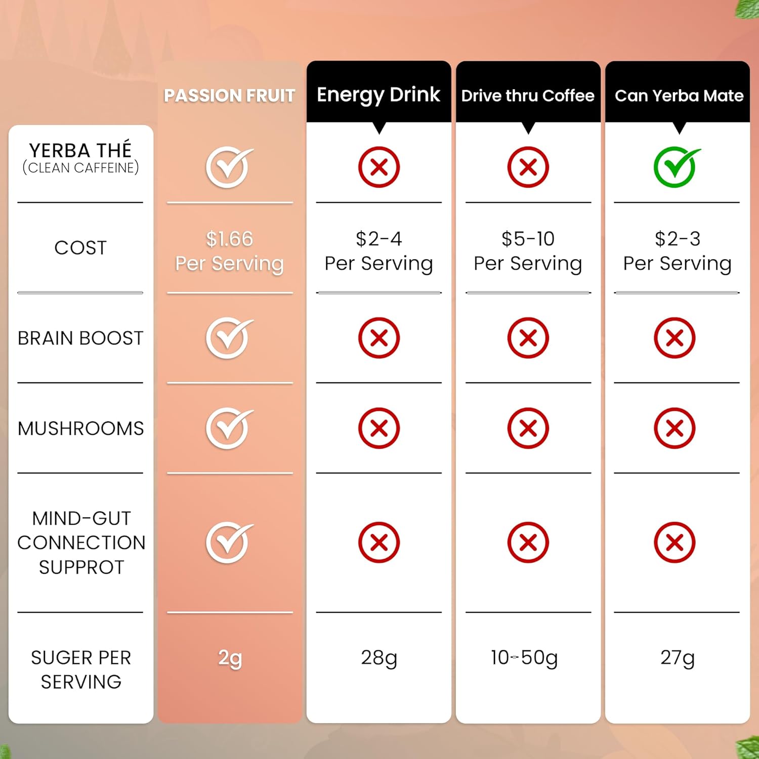 - Clean Yerba Mate Energy – Without the Crash: Fuel your day with our yerba mate tea powder – a powerful clean energy drink powder that delivers jitter-free stamina. Made with organic yerba mate and yerba mate extract, this yerba mate energy drink supports your active lifestyle. Experience a sustained brain boost and mental clarity with our clean yerba mate – the smart choice for a focus energy drink.
