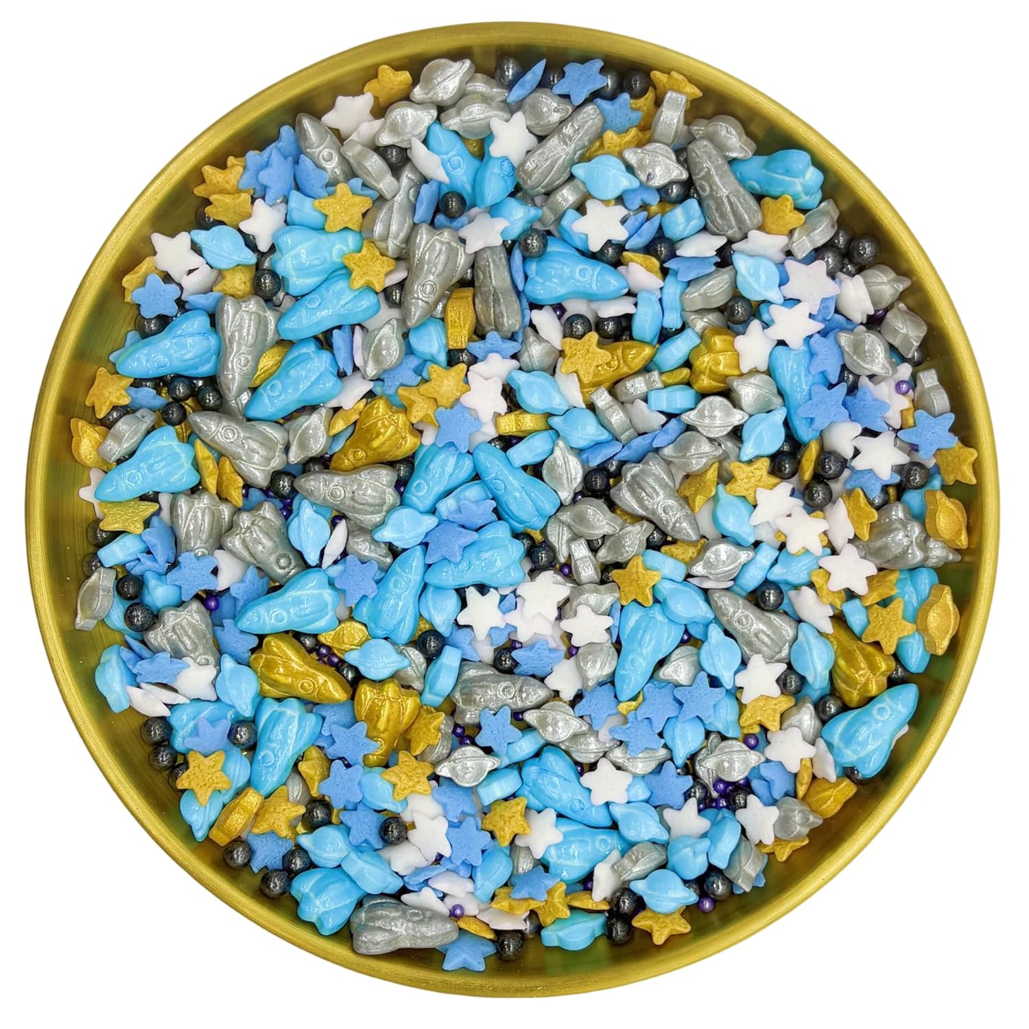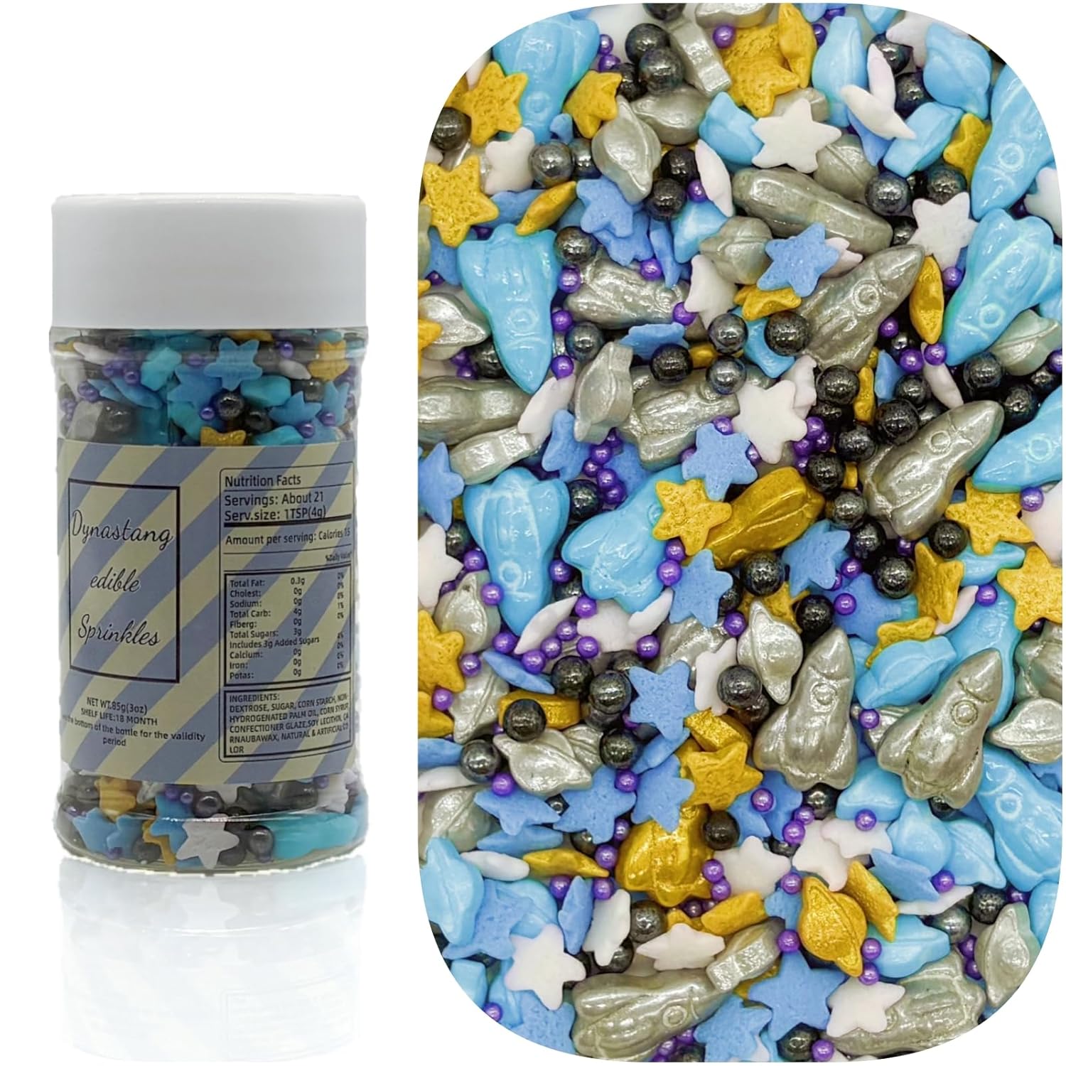 Dynastang Space Theme Sprinkles Planet & Stars & Spaceship Mixed Style Edible Cake Decorations Cupcake Toppers Cookie Perfect for Cakes, Cupcakes, Desserts Toppings 3OZ