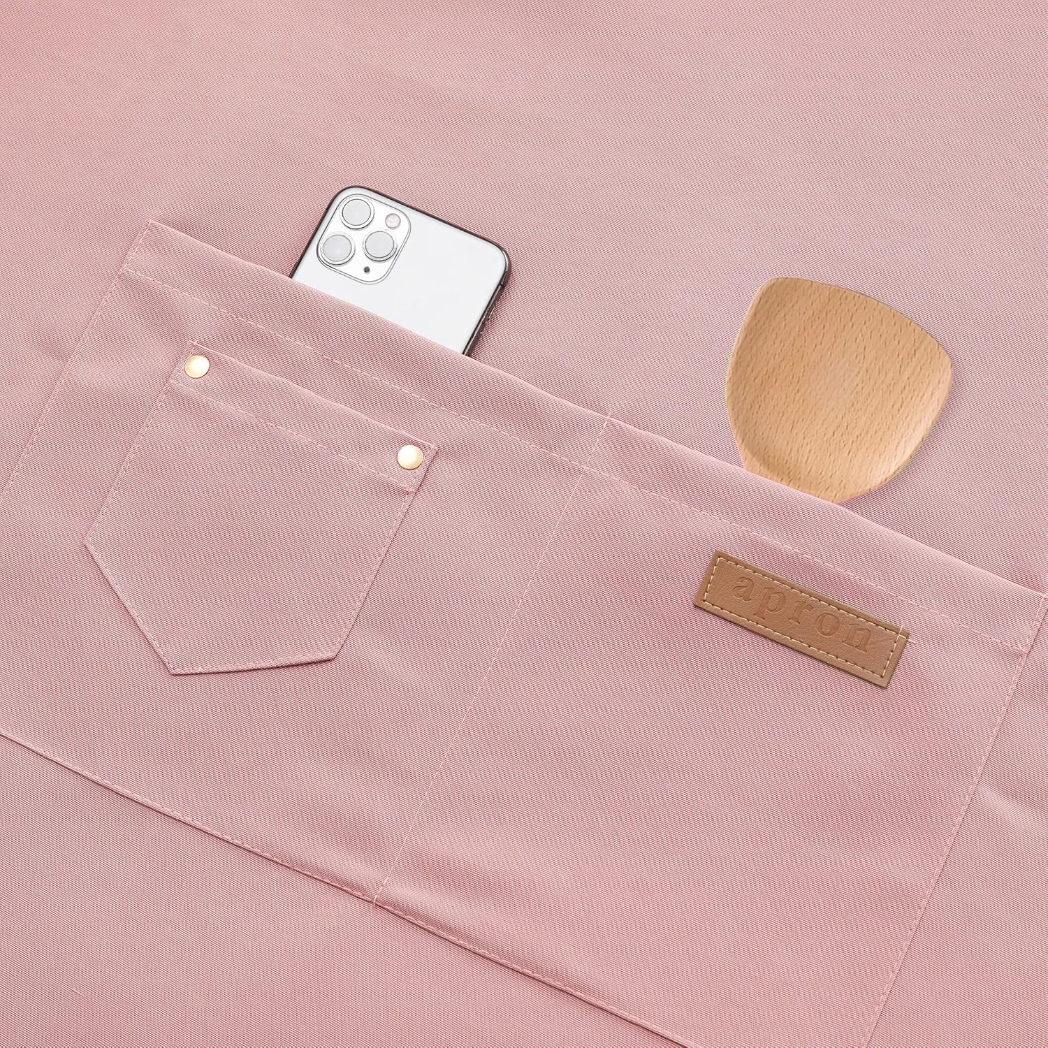 • 【Apron With Large Pockets 】Our kitchen apron has 2 large pockets in the middle of apron, and spacious divided pocket can give you enough place to hold into meat thermometer, grill slips, phones, recipe cards, seasoning packets, recipe cards, pen and phone etc.