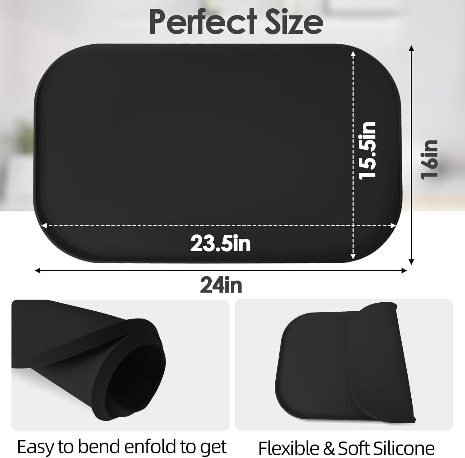 TOHONFOO Silicone Coffee Maker Mat with Lip, 24'' x 16'' Heavy Duty Coffee Maker Mat for Countertops, Coffee Tray Fit Under Coffee Machine Appliance Automatic Machines Espresso Accessory, Black
