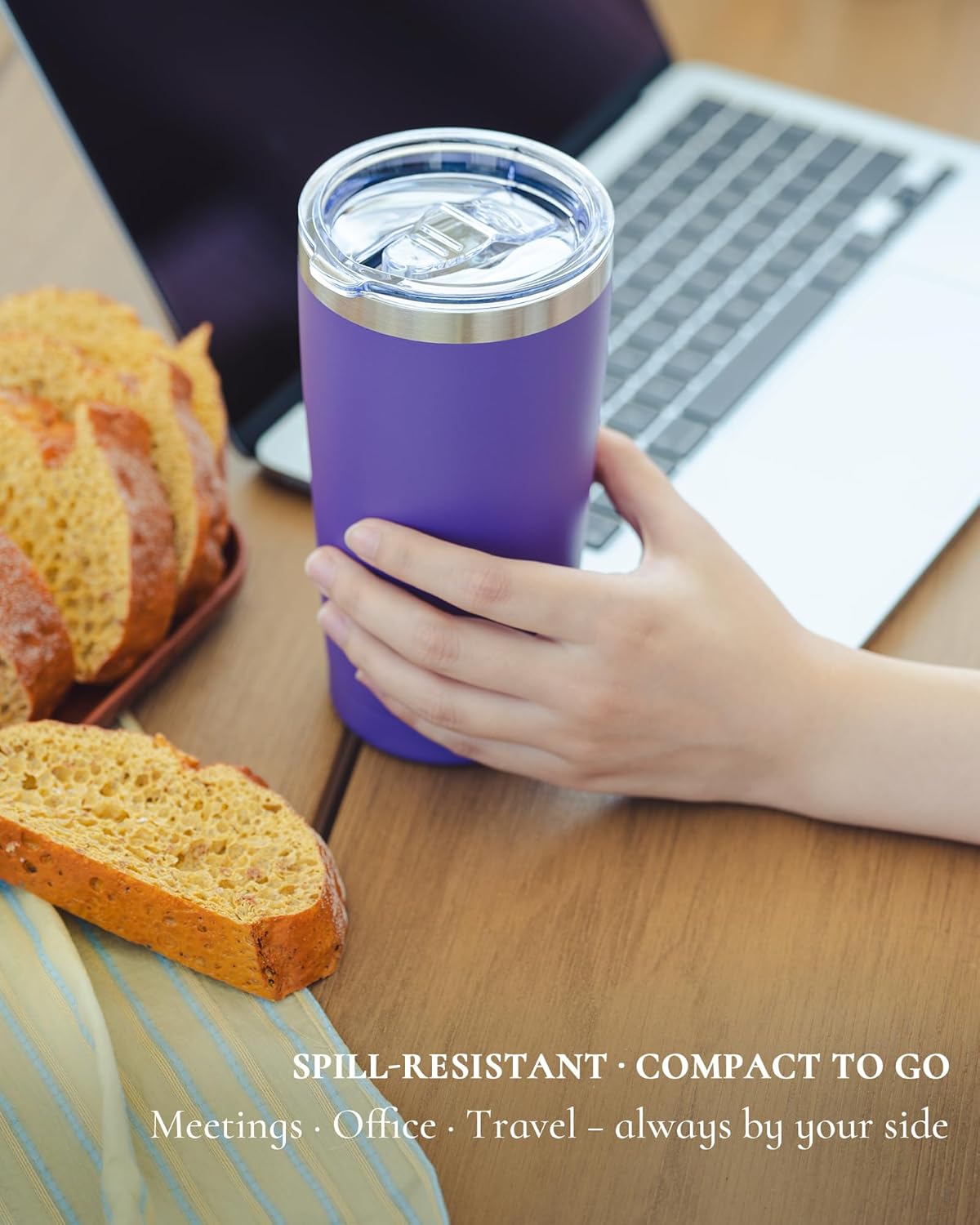 Travel Coffee Tumbler 20oz, Leakproof Travel Coffee Mug with Lid and Straw, Stainless Steel Double Wall Vacuum Insulated Tumbler for Hot/Iced Drinks (Textured Matte, Purple)