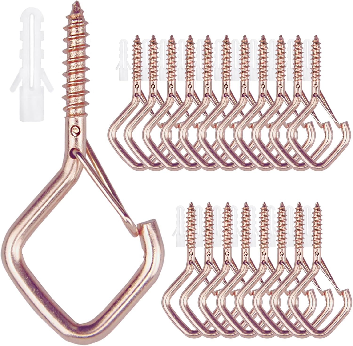 20PCS Eye Screw Hooks for Hanging Heavy Duty with Safety Buckle.Metal Ceiling Hooks for Hanging Plants,Cup,Wind Chime,Bird Feeders,String Lights at Indoor&Outdoor,2.36 Inch(No Drill Bit)