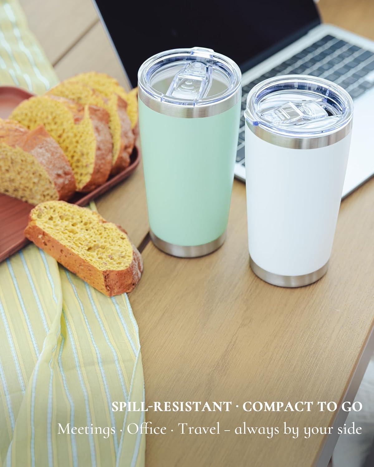 Travel Coffee Tumbler 20oz, 1 Pack Leakproof Travel Coffee Mug with Lid and Straw, Stainless Steel Double Wall Vacuum Insulated Tumbler for Hot/Iced Drinks (Textured Matte, White)