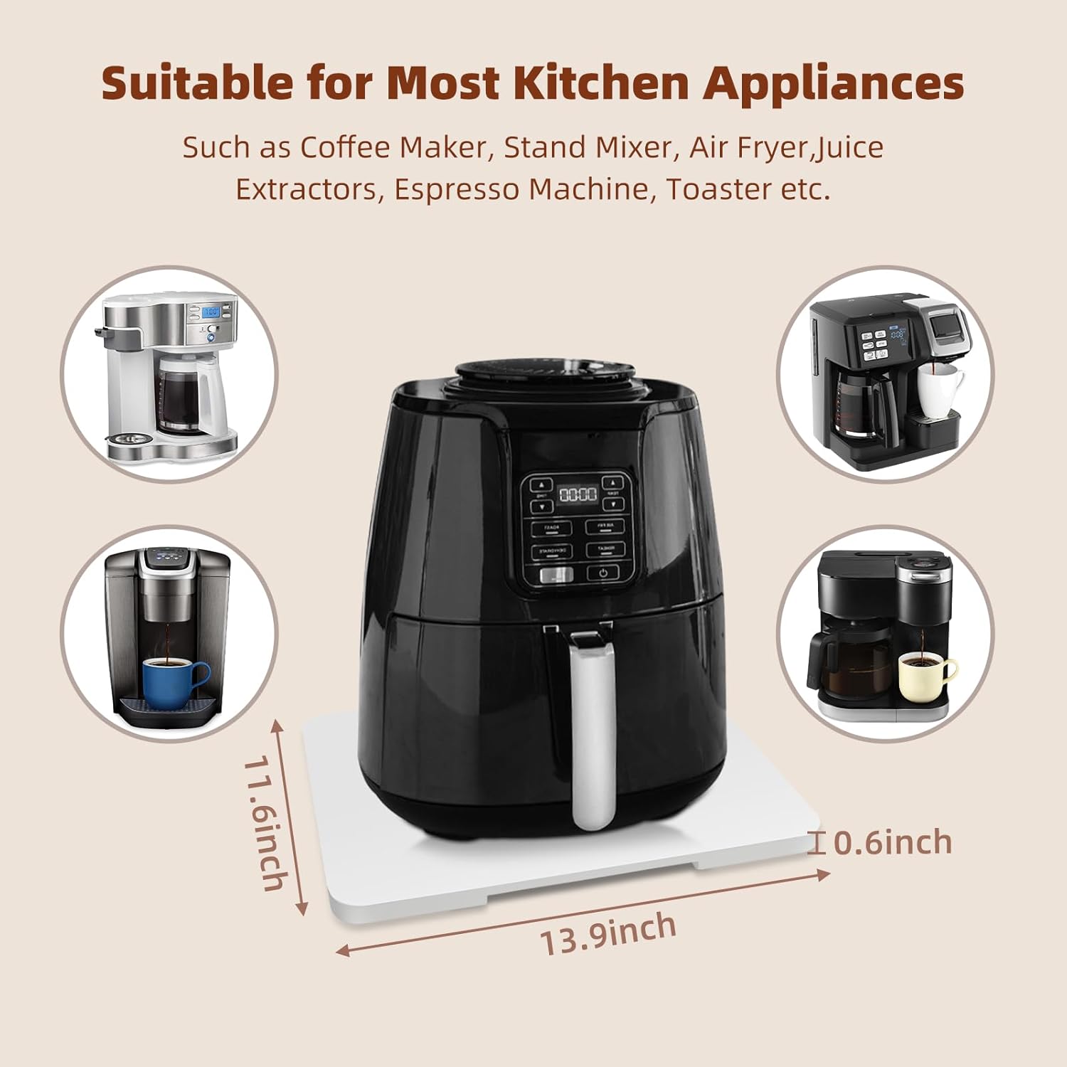 - SIZE OPTIONS: 【11.6"×13.9"】coffee maker slider tray for counter best for deeper depth double coffee makers or air fryers. Coffee maker trays for countertop suitable for Breville, Keurig K-Mini, Ninja,small coffee makers, espresso machines, air fryers, toasters and stand mixers.