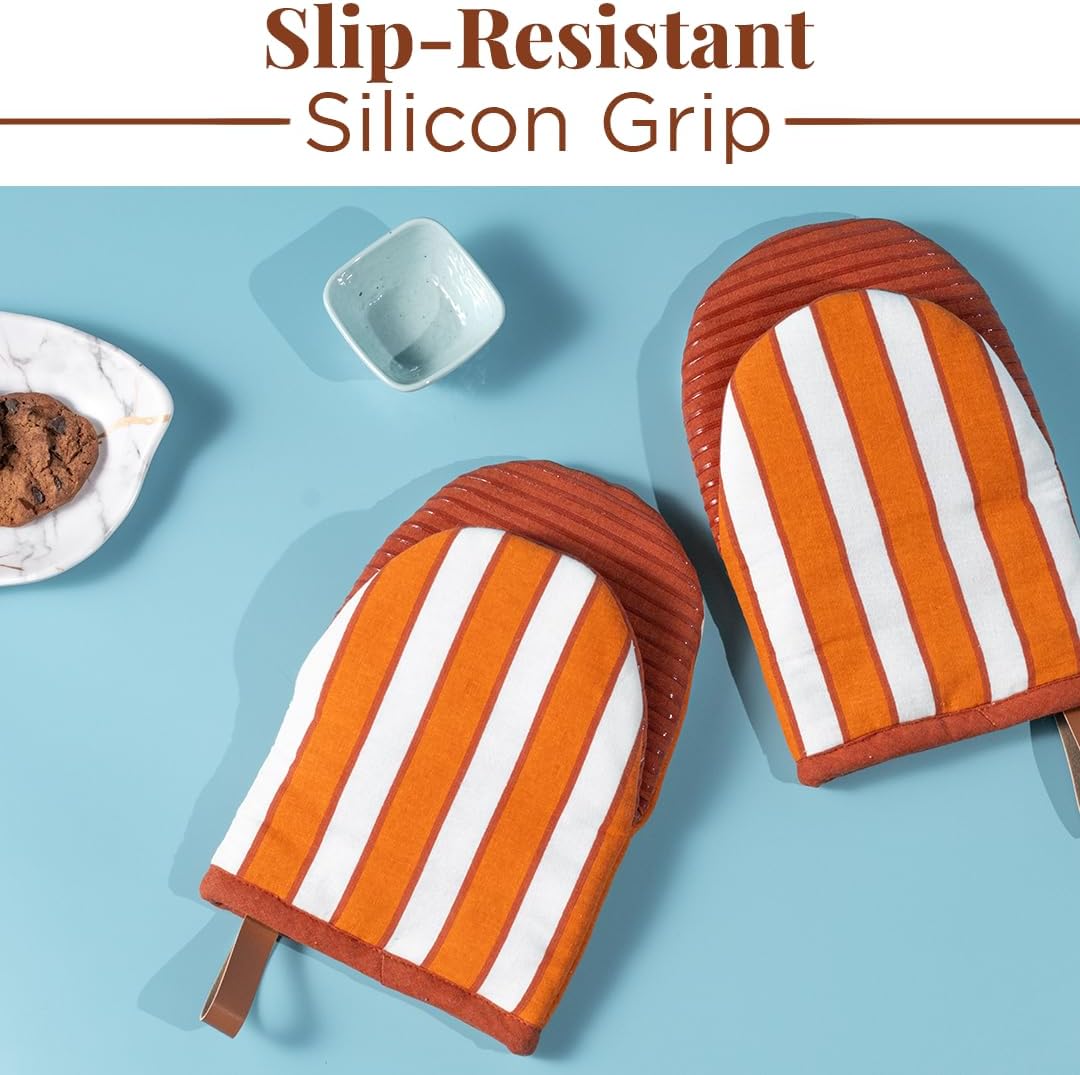- NON-SLIP GRIP: Achieve a confident hold with our Mini Mitts, featuring a robust non-slip silicone grip. Ideal for use as bbq gloves or as your KitchenAid or apartment essentials, these heat-resistant gloves provide exceptional dexterity and control, making them indispensable as grill gloves for all your cooking needs. A great fall kitchen decor or kitchen fall decor option for this autumn season!