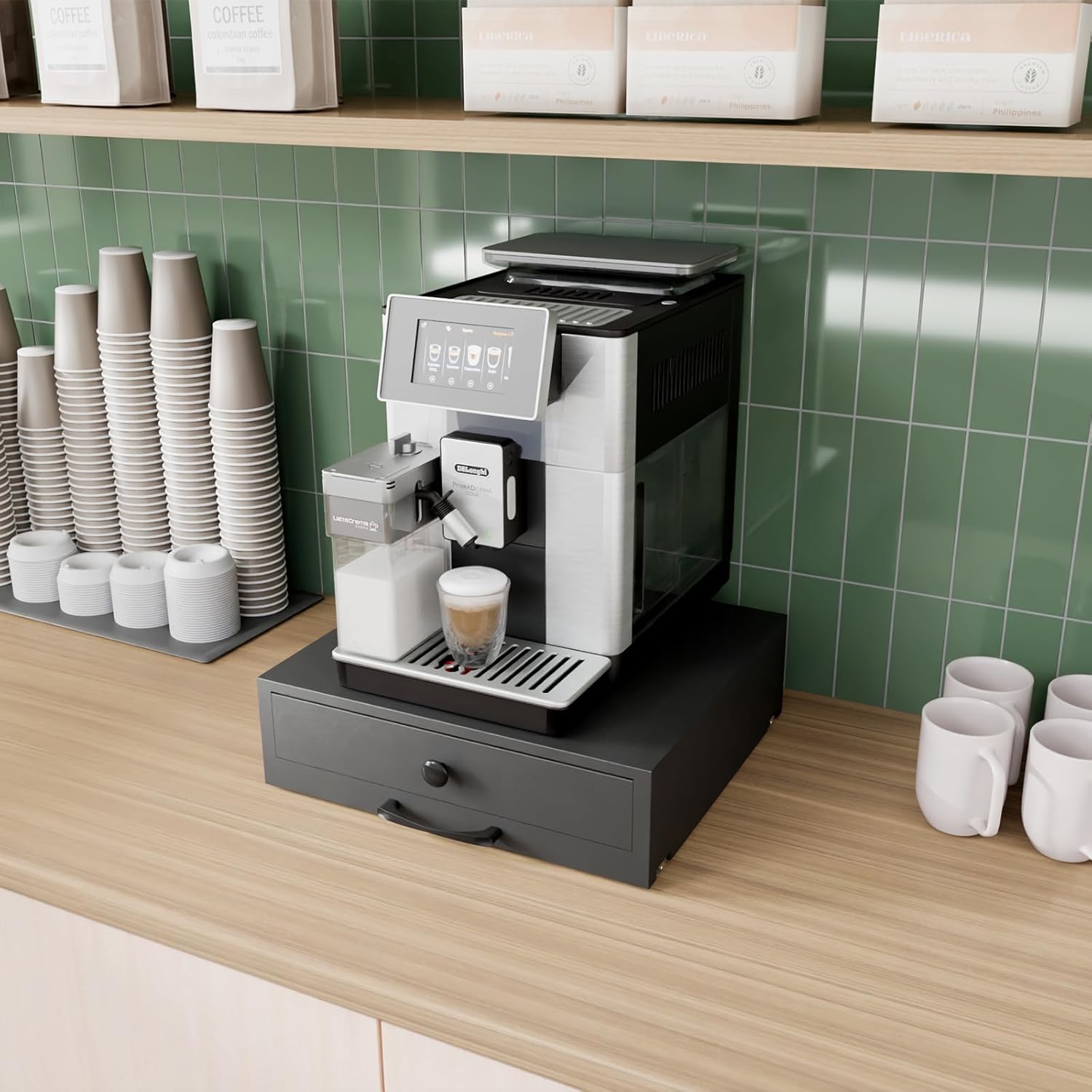- Spacious Storage Drawer: Features a large-capacity drawer (13.39" x 12.99" x 2.05") that keeps your coffee pods, tea bags, or other drink supplies neatly organized and within easy reach.