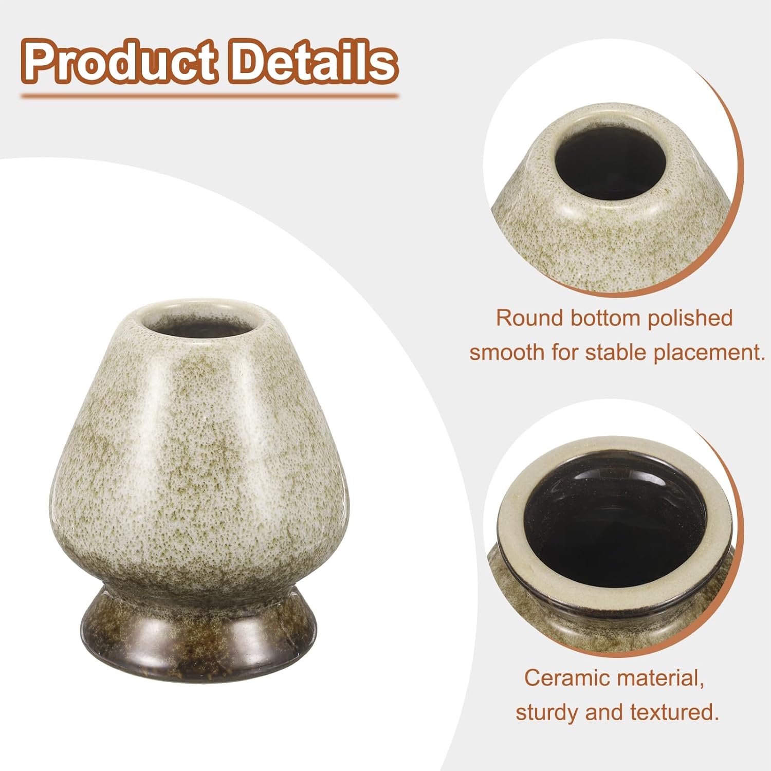 - Material - The tea whisk holder is made of ceramic, which is sturdy and textured, keeps it clean, and extends the life of the tea whisk. It adopts a simple design style, and the bottom is polished smoothly and finely, aiming to provide a stable and convenient support platform for placing the tea whisk.