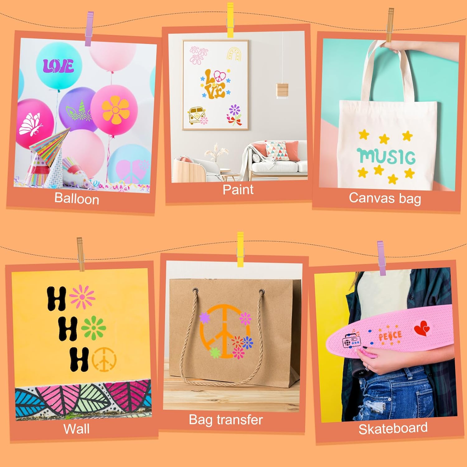 - Wide Range of Application: these groovy party stencils are ideal accessories for holiday decorations, they are suitable for many occasions, such as home, parties, weddings, gatherings and so on, and they can also paint on glass, wood, canvas, furniture, fabric and papers