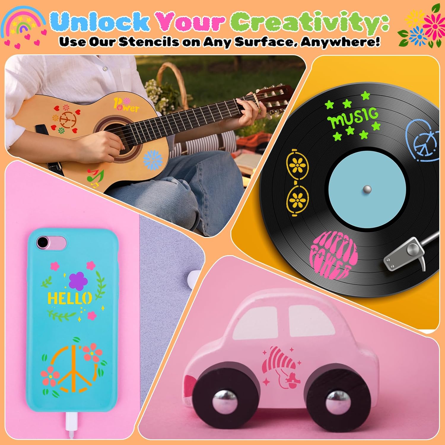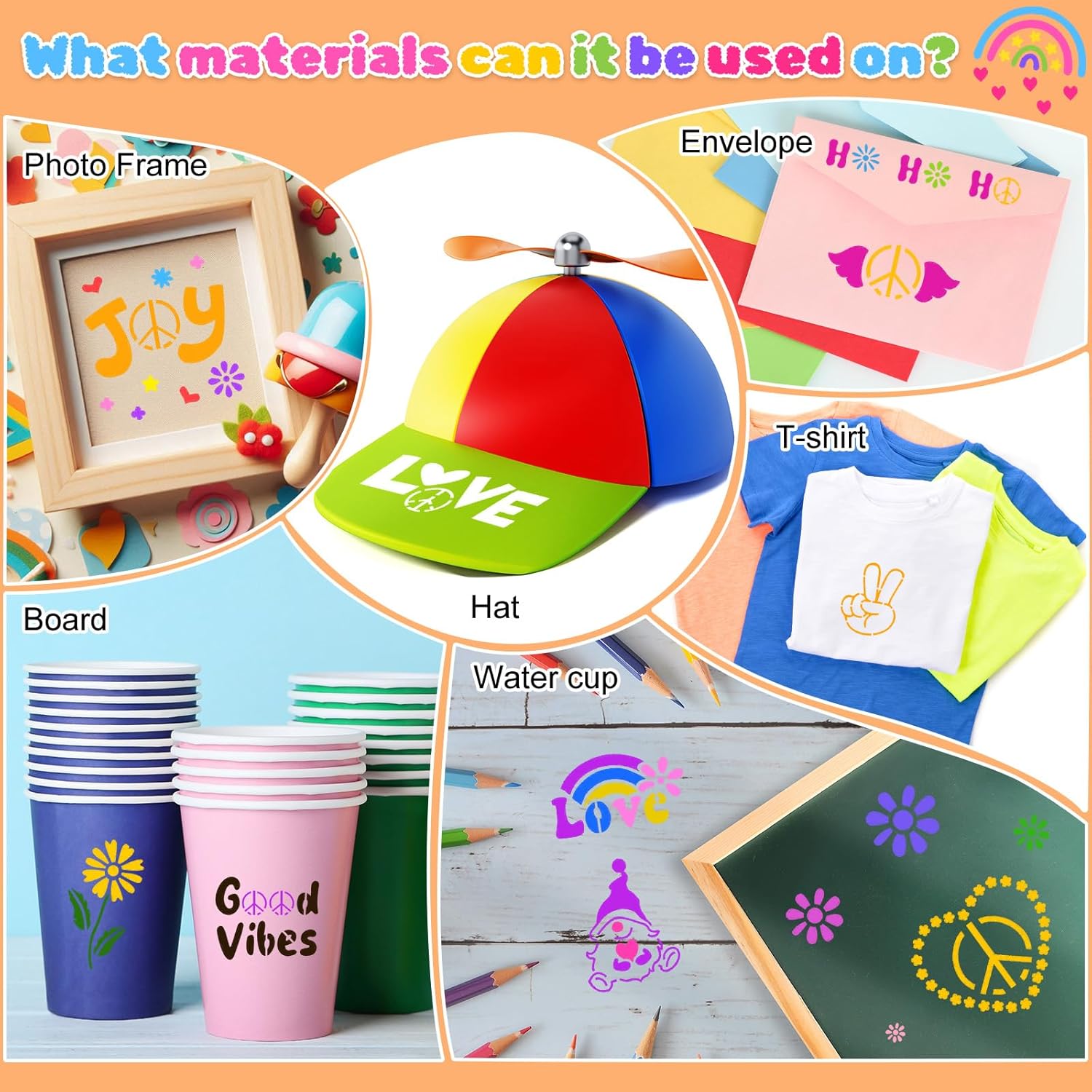 - Reliable Material: our groovy party stencils are made of quality PET material, solid and reliable, not easy to break, fade, rust or deform, washable and reusable, easy to clean and can be applied for a long time