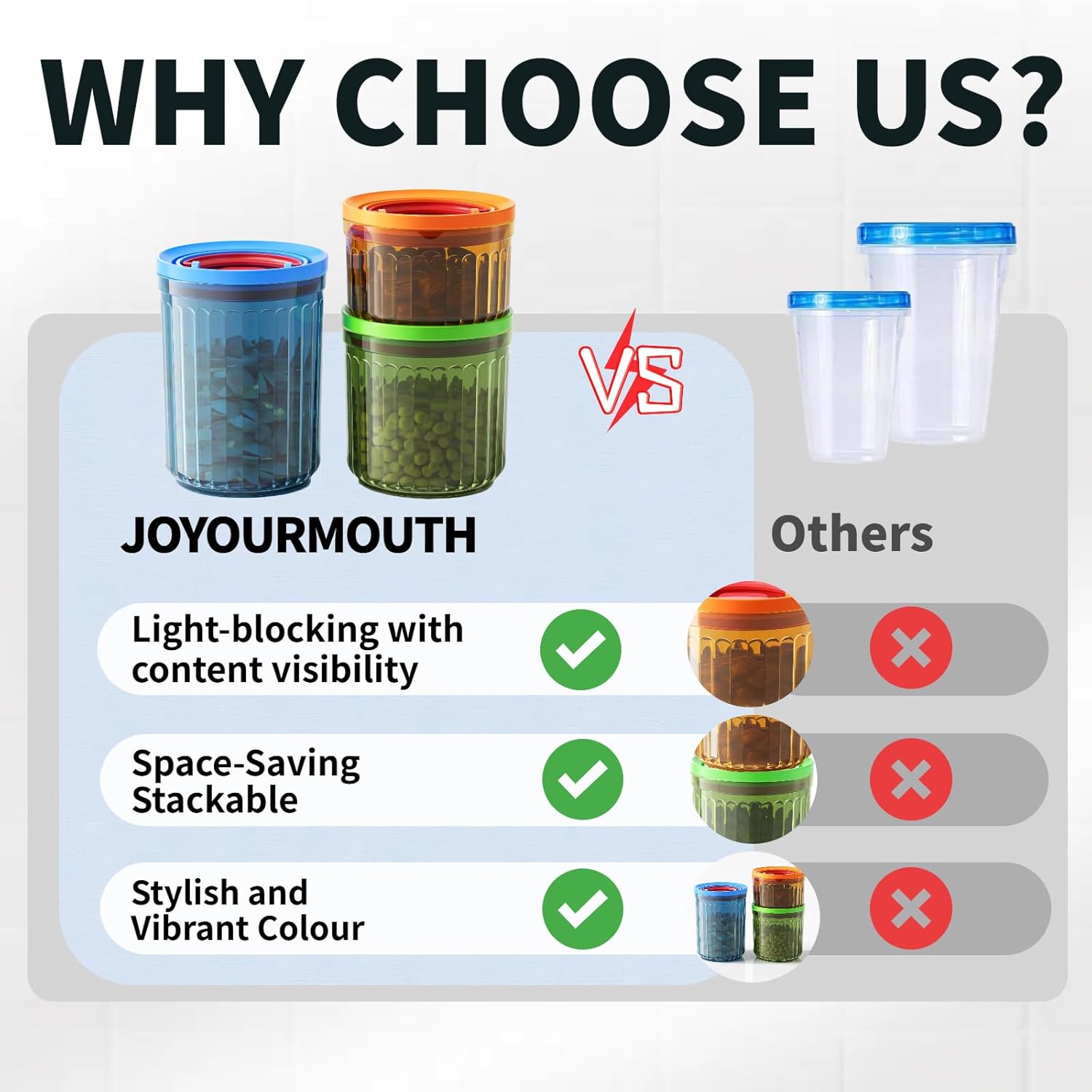 - 2. Stylish and Vibrant Color Options,Light-Blocking Design:Available in Vibrant,Bright and cheerful color options (orange10oz, green17oz, blue24oz), making it easy to categorize coffee types,sugar,beans,snacks,while adding a pop of color to your space.Dark-tinted yet transparent canisters block UV rays while allowing content visibility,allowing easy content checks without compromising freshness
