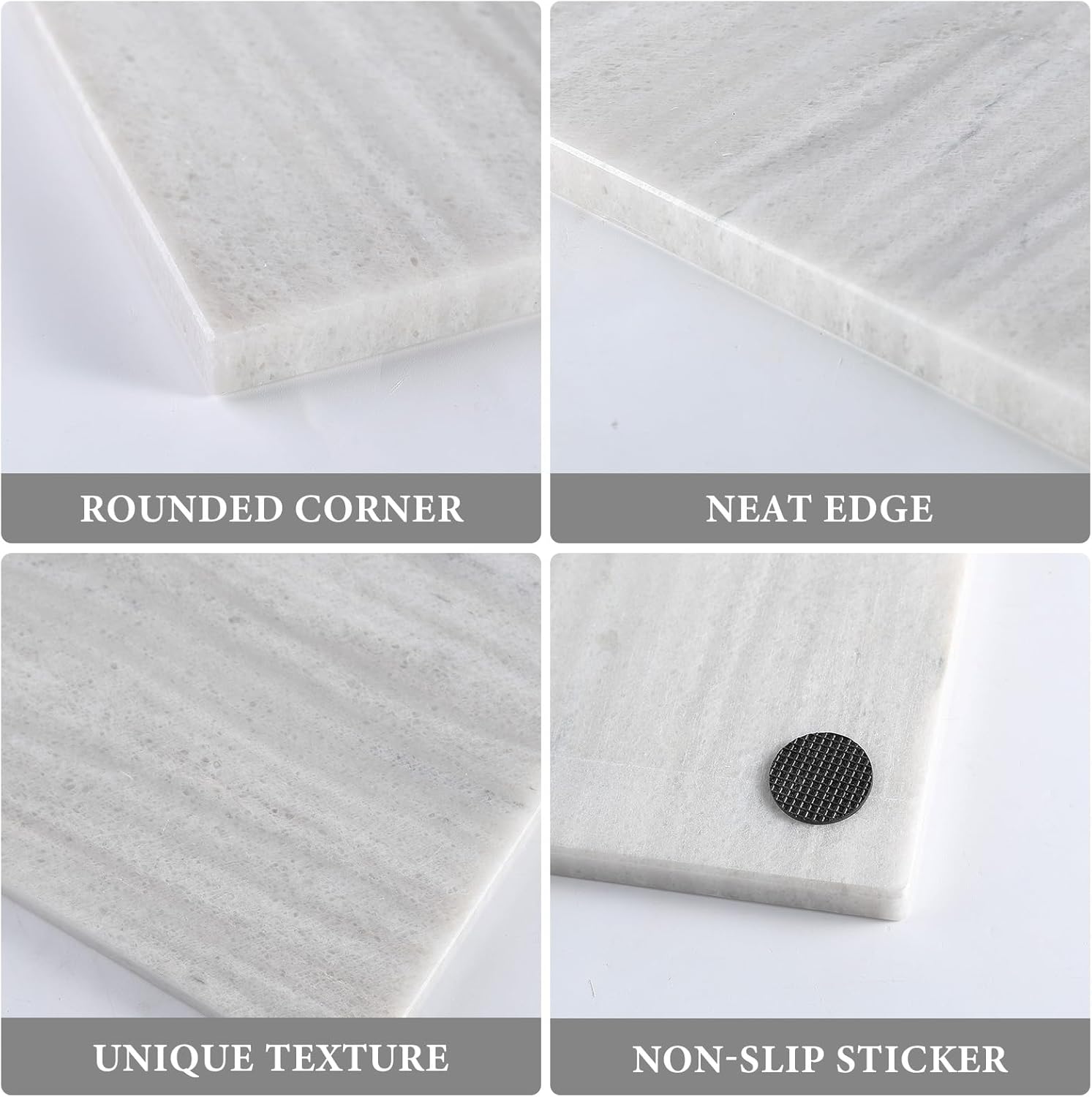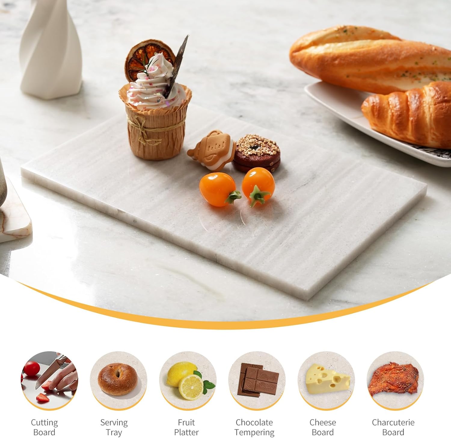 Koville Natural Marble Cutting Board for Kitchen Countertop, 12" x 8" Pastry Bread Macaron Display Board, Real Stone Slab Marble Cheese Boards, Bathroom Perfume Tray Candle Plate(Nestos White)