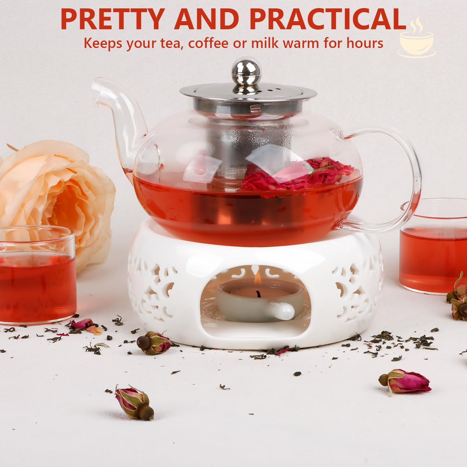 - [ Keeps Your Tea Warm] Thanks to the teapot warmer, you’ll always enjoy your tea, coffee, milk and hot cocoa at the perfect temperature. What a great way to keep your tea/ beverage warm without having to reheat!
