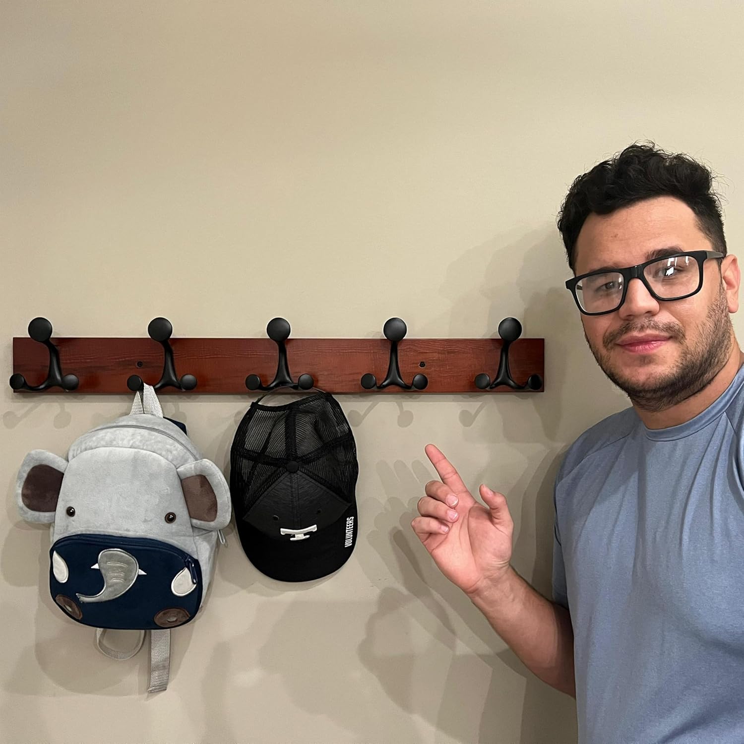 - 【Sturdiness & Large spacing】Solid wall mount coat rack with 5 triple hooks, hang 5 or 10 jackets per rack. Plenty of space to support clothes, bags, and pet supplies, making it perfect for family.