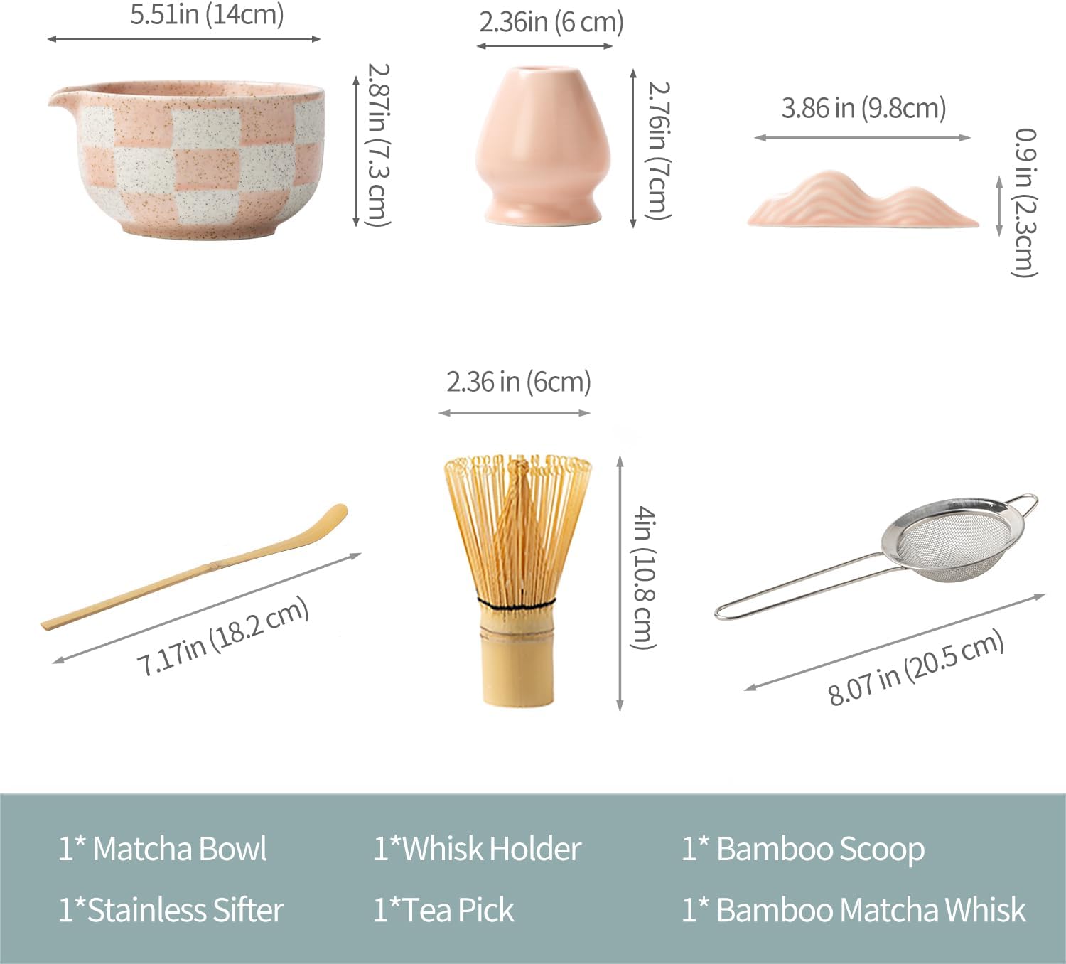 - Complete Matcha Tea Ceremony Set** – This 7-piece matcha tea set includes everything you need for an authentic Japanese tea experience: **1 ceramic matcha bowl (Chawan), 1 bamboo whisk (Chasen), 1 bamboo scoop (Chashaku), 1 tea cloth, 1 sifter, and . Perfect for beginners and tea enthusiasts alike.