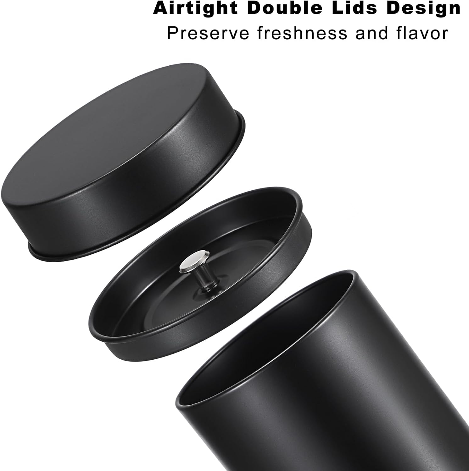 JUXYES 12 Pack Tea Tins Canister with Airtight Double Lids, 16 oz Loose Leaf Tea Storage Airtight Kitchen Canisters Tins Can Box for Storage Loose Tea Coffee Herbs and Spices, Black