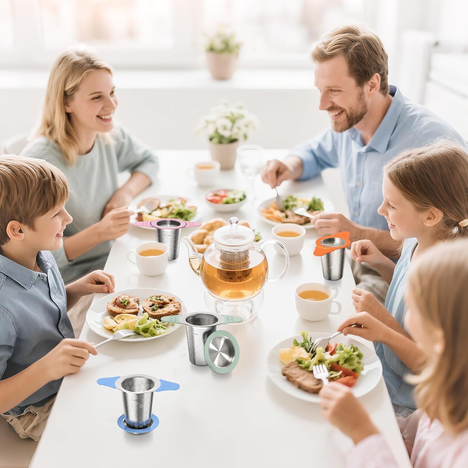 Tea Infuser for Loose Leaf Tea,18/8 Stainless Steel Tea Infuser with Heat Proof Silicone Handles,Extra Fine Mesh Tea Strainers Filter Fine Tea Leaves Effectively,Fits TeaPots/Mugs-4Pack