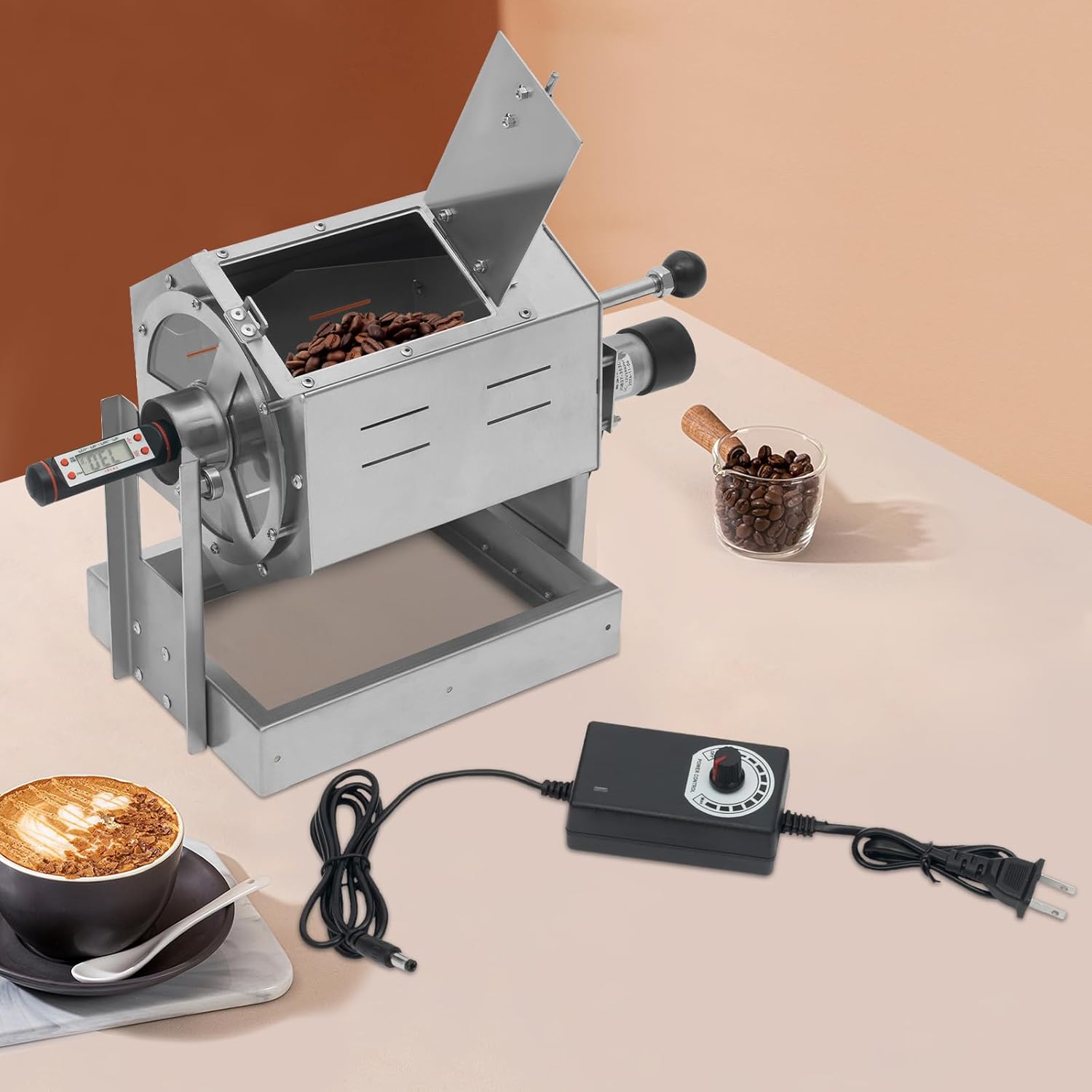 0.66-2.65lb Automatic Coffee Roaster Coffee Bean Roasting Machine Commercial Coffee Gas Roaster with Thermometer & Speed Controller Drum Type Gas Burner Require