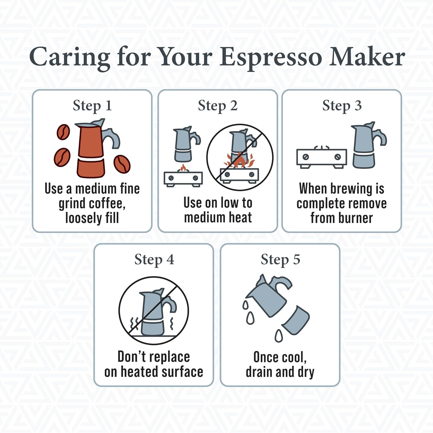 - 6 ESPRESSO CUP CAPACITY: Brew up to 6 demitasse cups (10.14 oz total) of delicious espresso in this stove top coffee maker — ideal for enjoying entertaining guests or a strong morning pick-me-up with your favorite beans.
