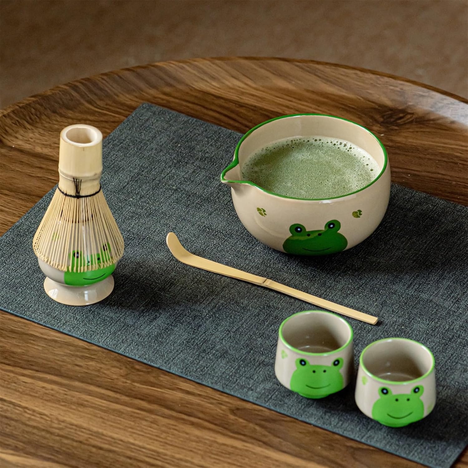 - ✅ Complete Matcha Set – Includes everything you need to whisk up your matcha: a 580ml ceramic chawan (bowl), 2 frog-themed cups, natural bamboo whisk (chasen), bamboo scoop (chashaku), and a whisk holder. All tools, all cute.