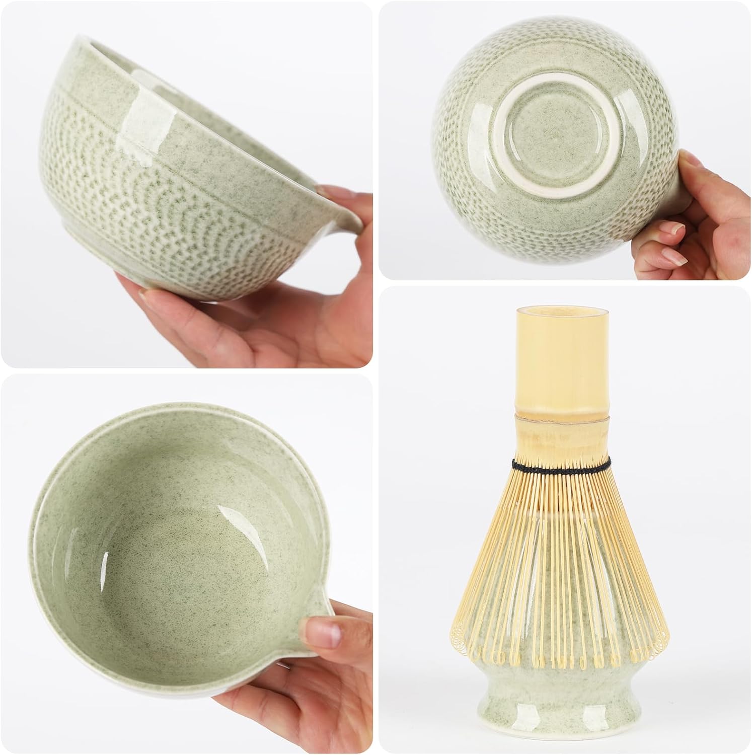 - Complete Matcha Kit: This matcha kit includes essentials for an authentic matcha experience: 1* Bamboo Matcha Whisk, 1* Bamboo Scoop, 1* Scoop Rest, 1* Stainless steel sifter, 1* Ceramic Matcha Bowl (Chawan), 1* Whisk Holder, 1* Cherry blossoms Tea Towel and 1* Hand book. Each tool is crafted with precision, designed to make your matcha lifestyle effortlessly stylish