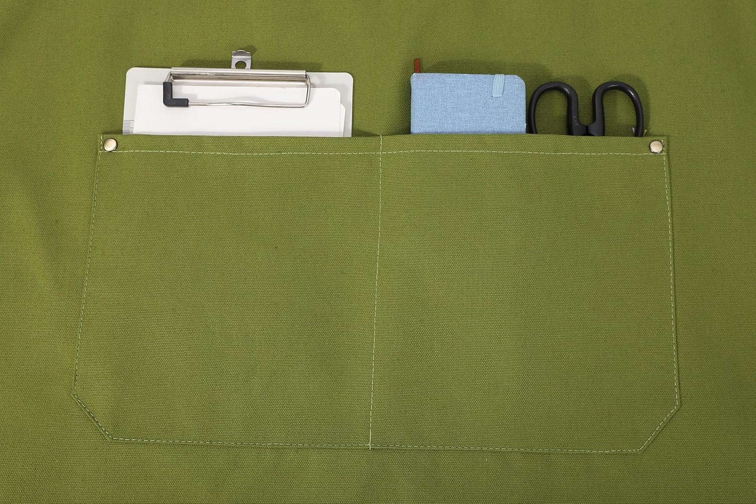 AFUN Chef Aprons for Women Men with Large Pockets, Cotton Canvas Cross Back Water Repellent Work Apron, Size M to XXL (Armygreen)