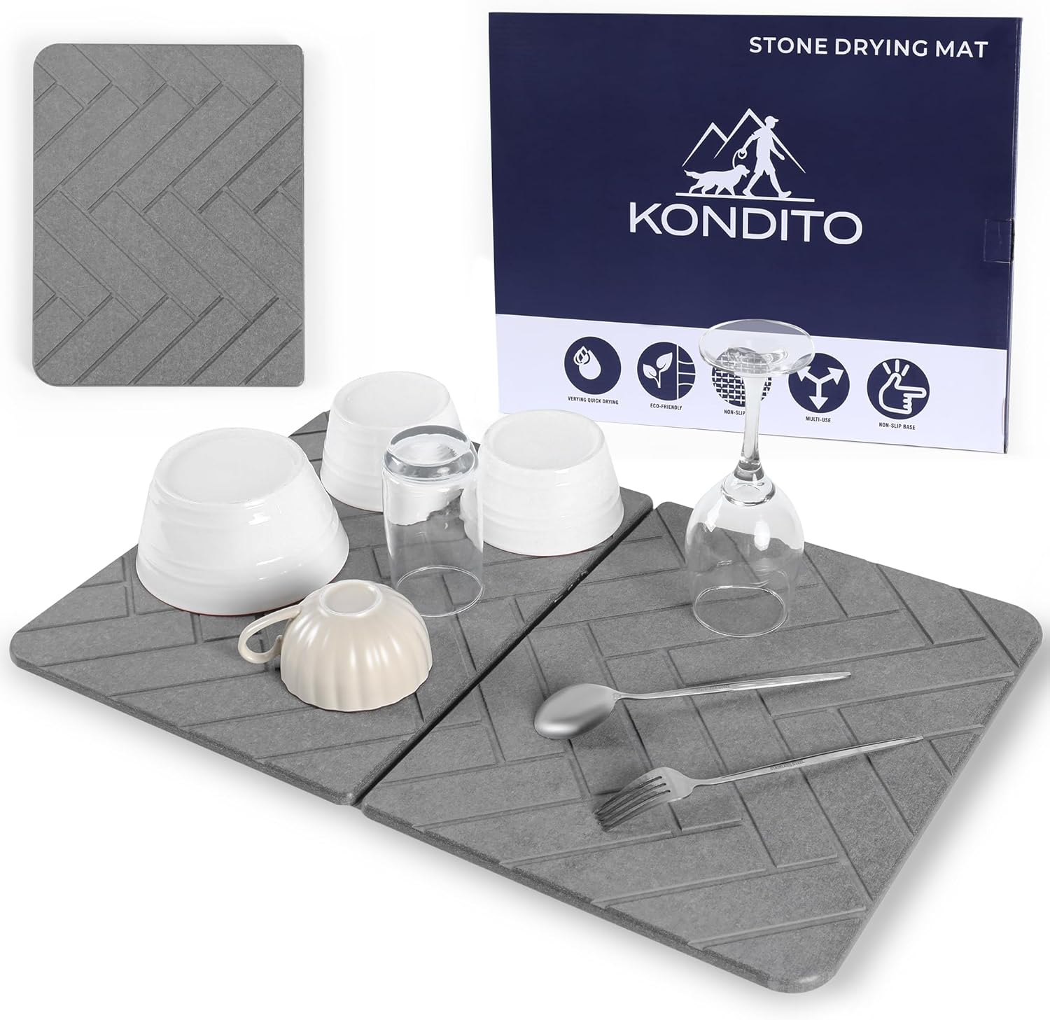 - [MULTI-USE & VERSATILE] More than a dish drying stone, this mat doubles as a stylish bathroom mat, entryway mat, or pet food and water bowl mat, giving you functional beauty anywhere water and mess meet.