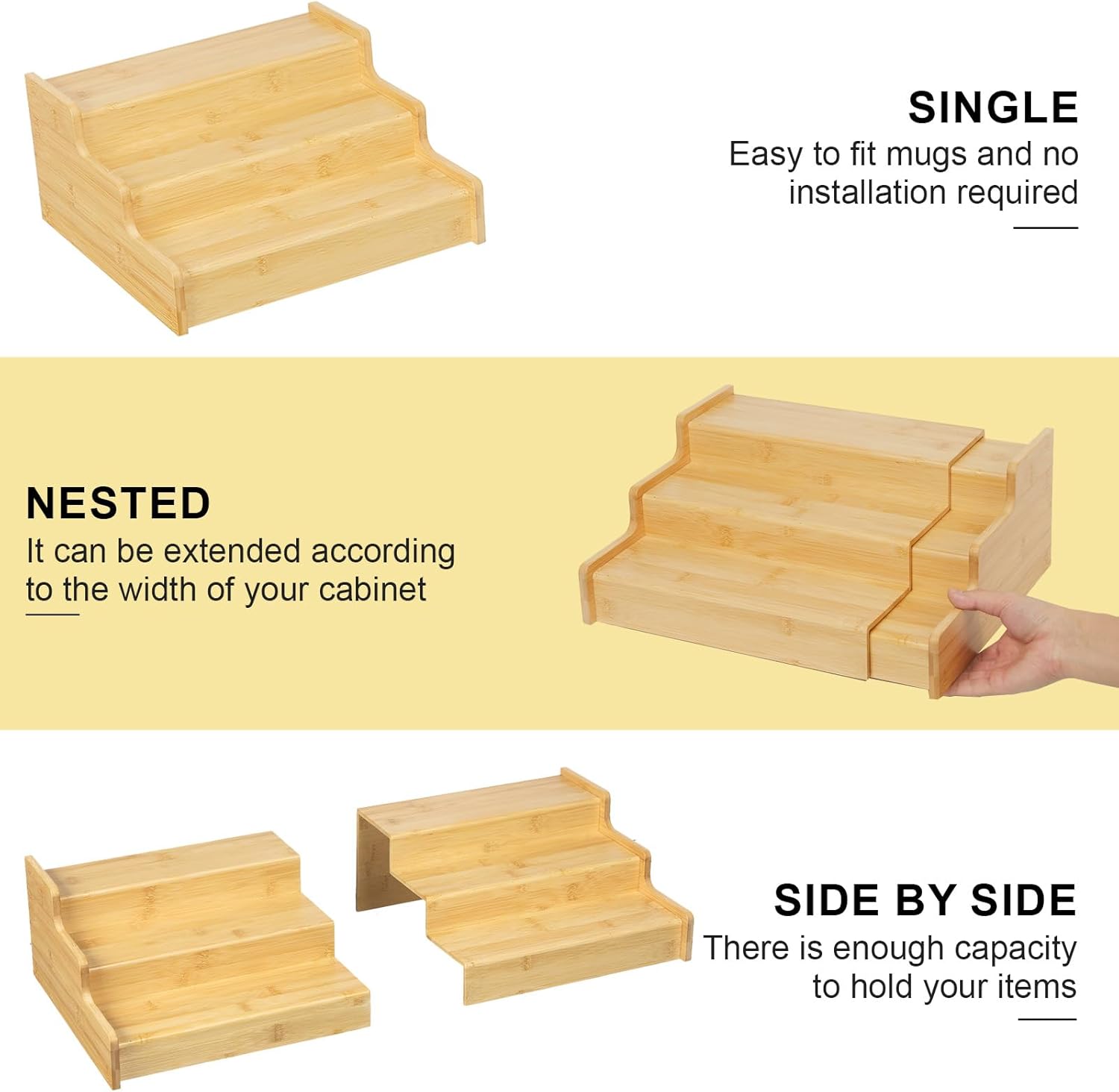3-Tier Expandable Bamboo Mug Holder For Countertop Coffee Cup Holder Display Mug Organizer Mug Rack for Coffee Bar Organizer Mug Shelf for Cabinet for Kitchen, Home
