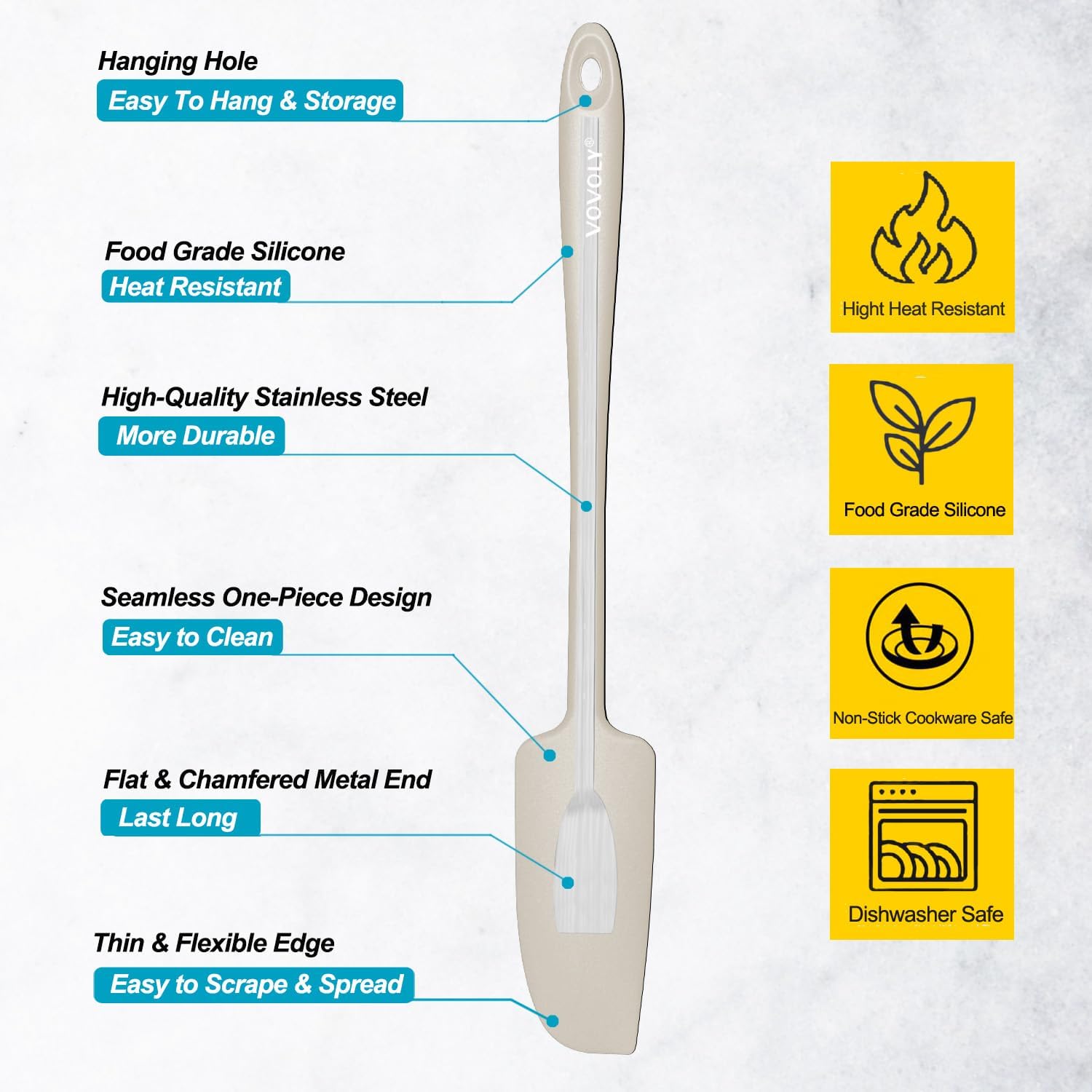 2-Pack Vovoly Silicone Jar Spatulas, Small Seamless Design Rubber Scraper with Stainless Steel Core, Heat Resistant and Non-Stick Mini Spatula for Jars and Blenders, BPA Free,11 IN, Khaki