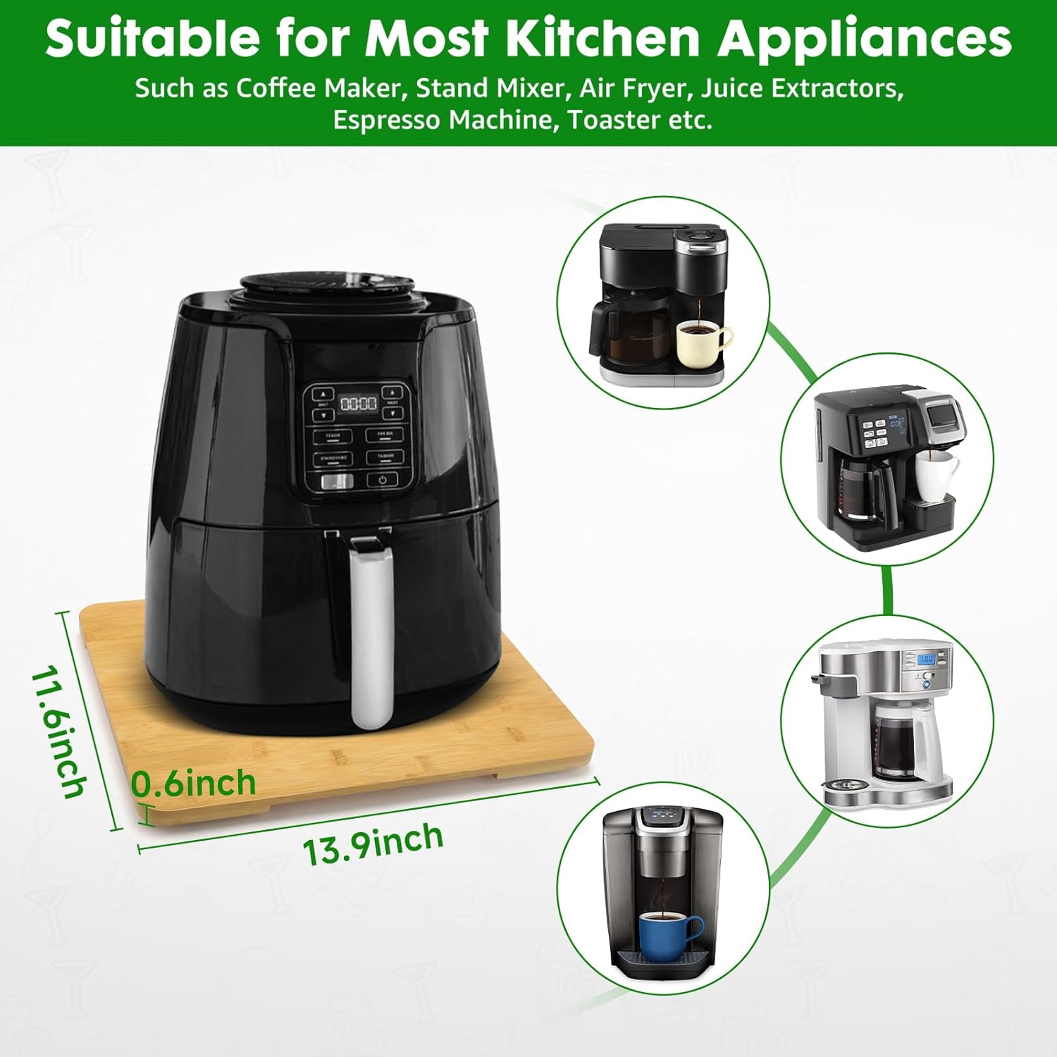 Appliance Slider 360° Rolling Tray for Coffee Maker- Bamboo Coffee Pot Slider Tray Countertop Rotation Sliding Tray with Wheels, Small Appliances Mat (Medium13.9"×11.6")
